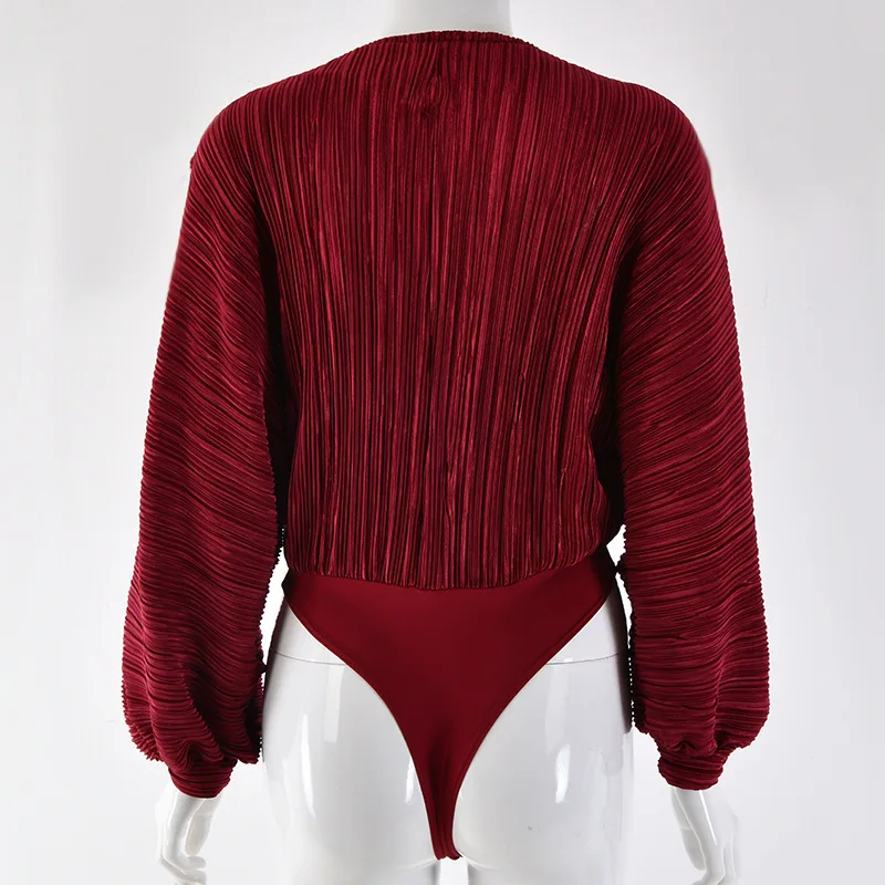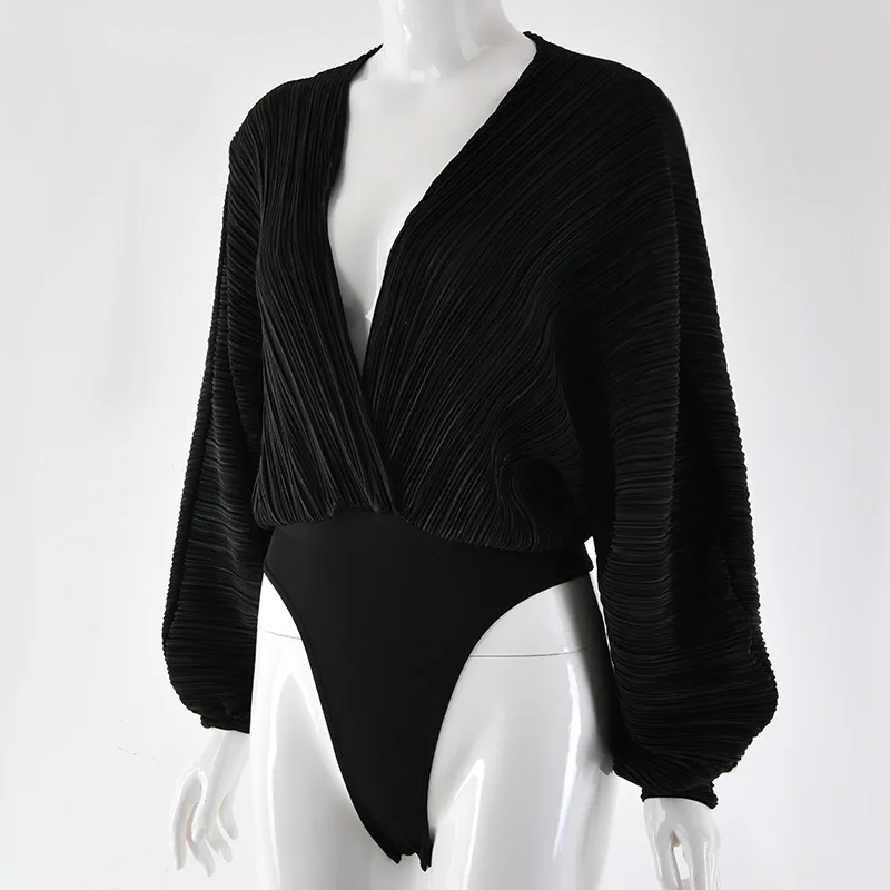 Женское Плиссированное боди с длинным рукавом и V-образным вырезом