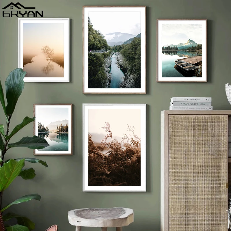 Картина с окошком, видом на озеро, лодку, картина, природа, пейзаж, изображение реки, горы, Setaria картины с рисунком трав, Постер в скандинавском стиле, настенное художественное украшение