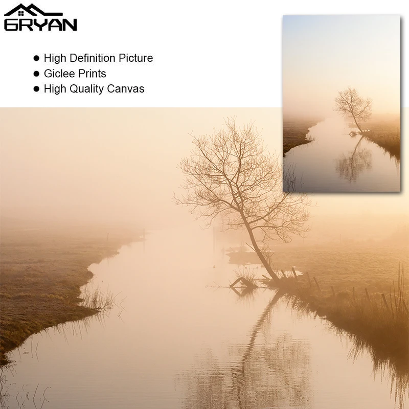 Северное растение пейзаж настенная живопись на холсте Фото Туманный...