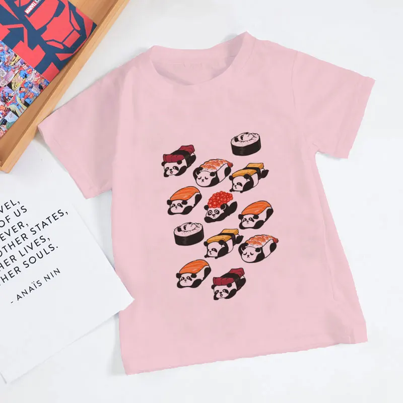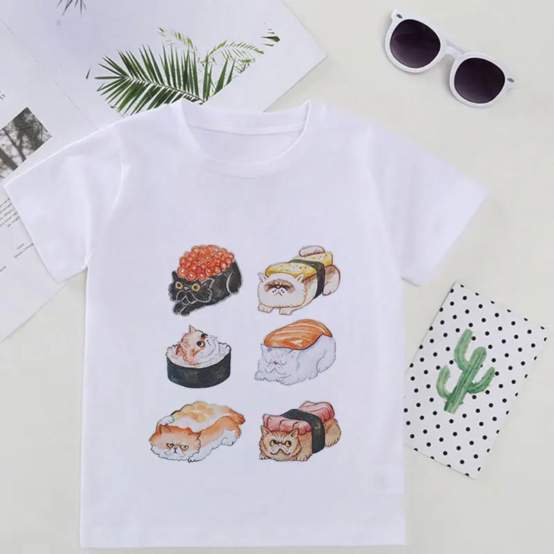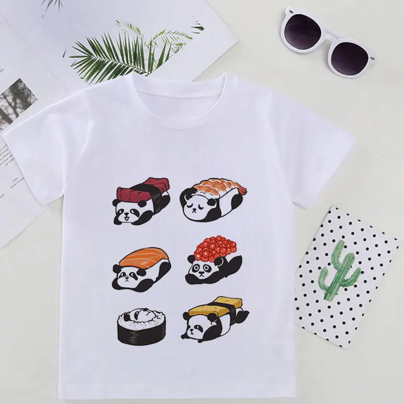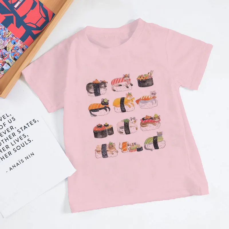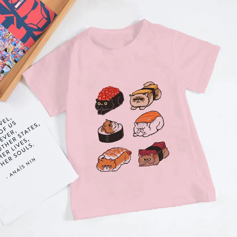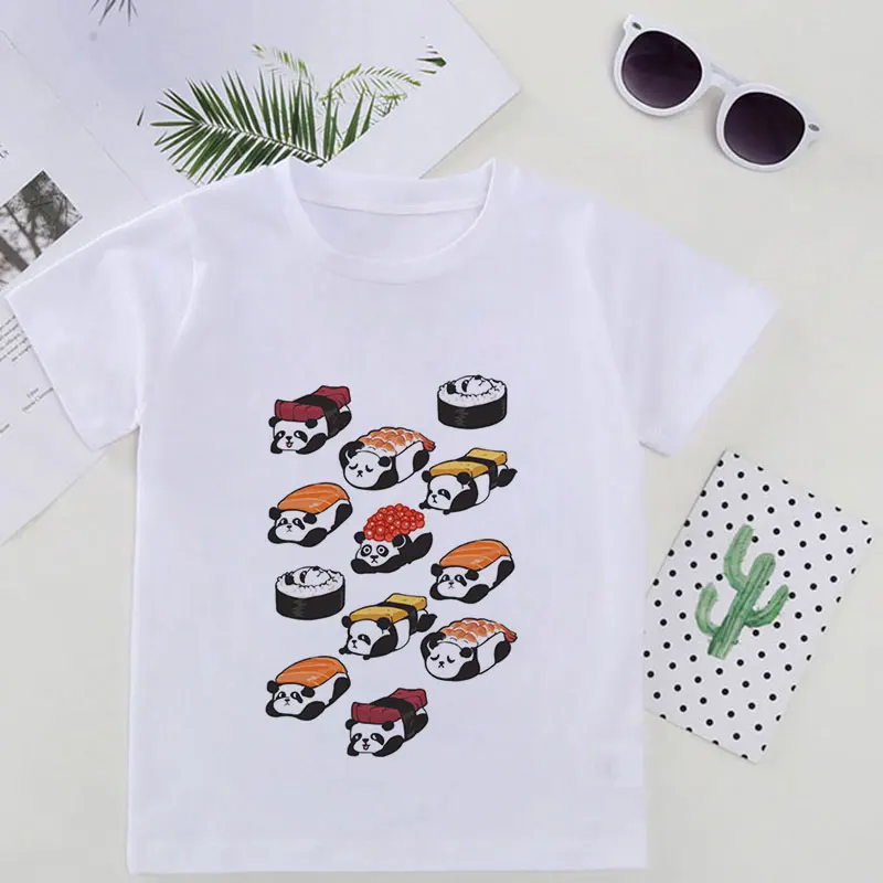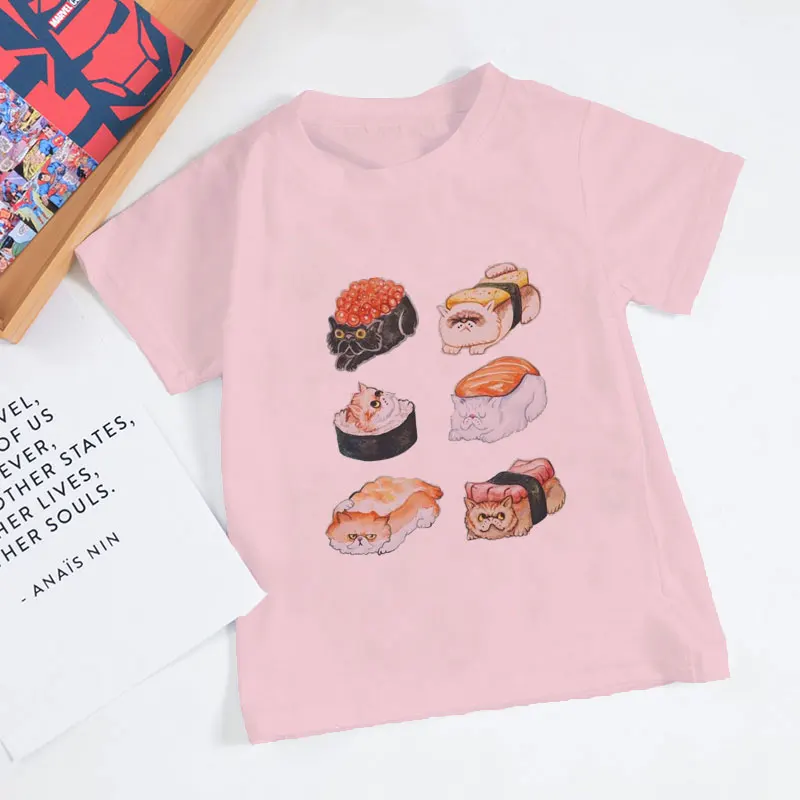 Футболка унисекс, с принтом суши, кошки и панды, для мальчиков 2-9 лет