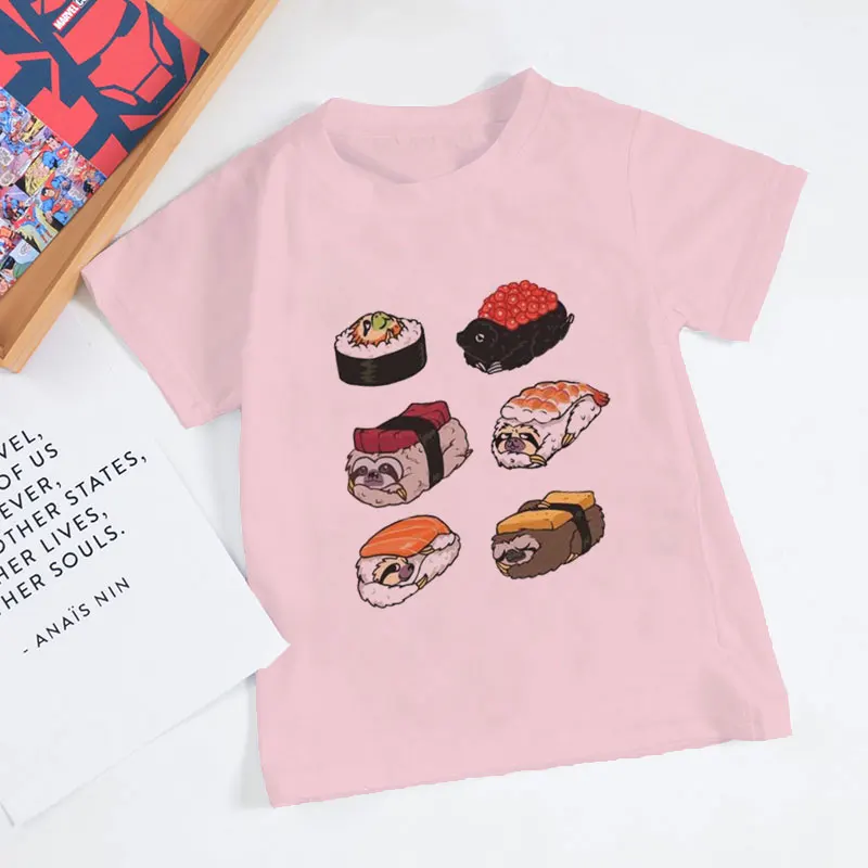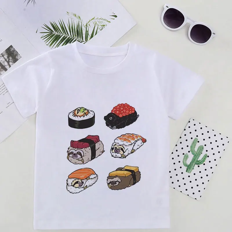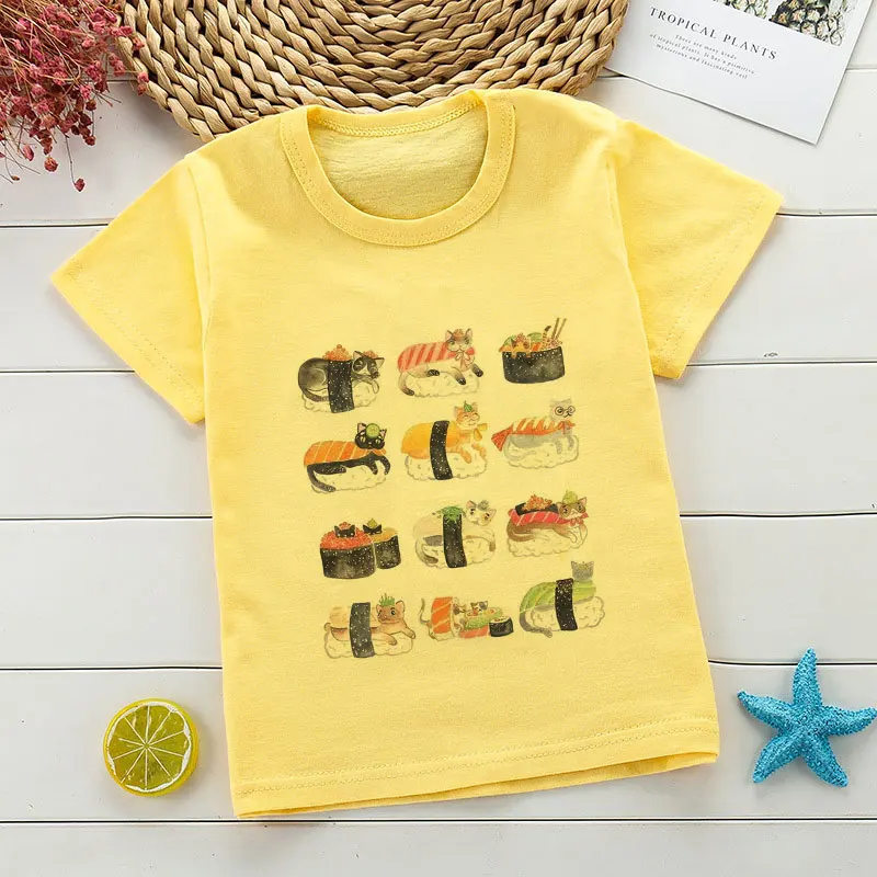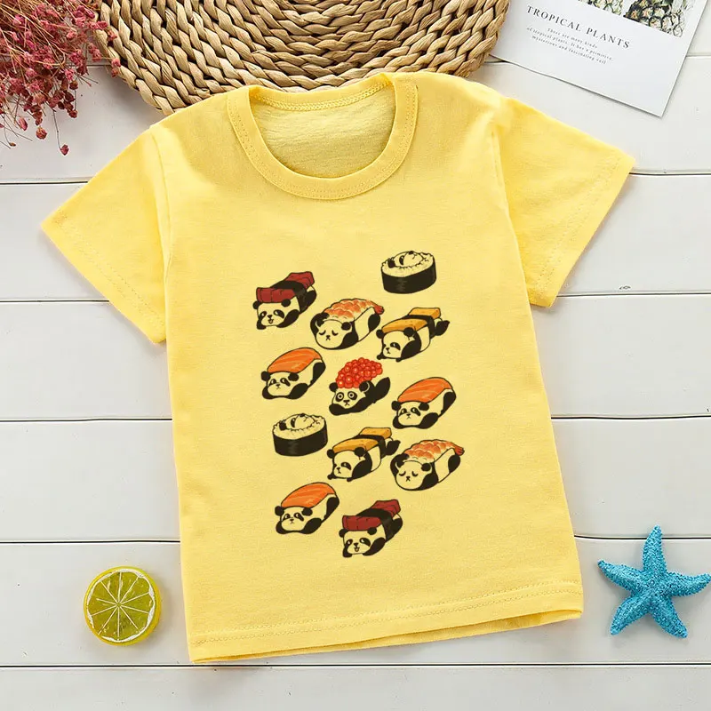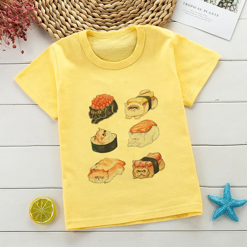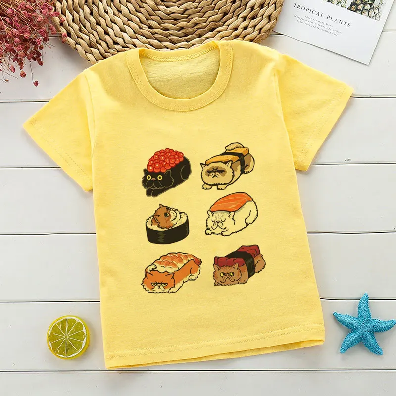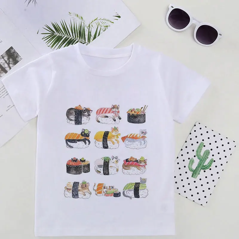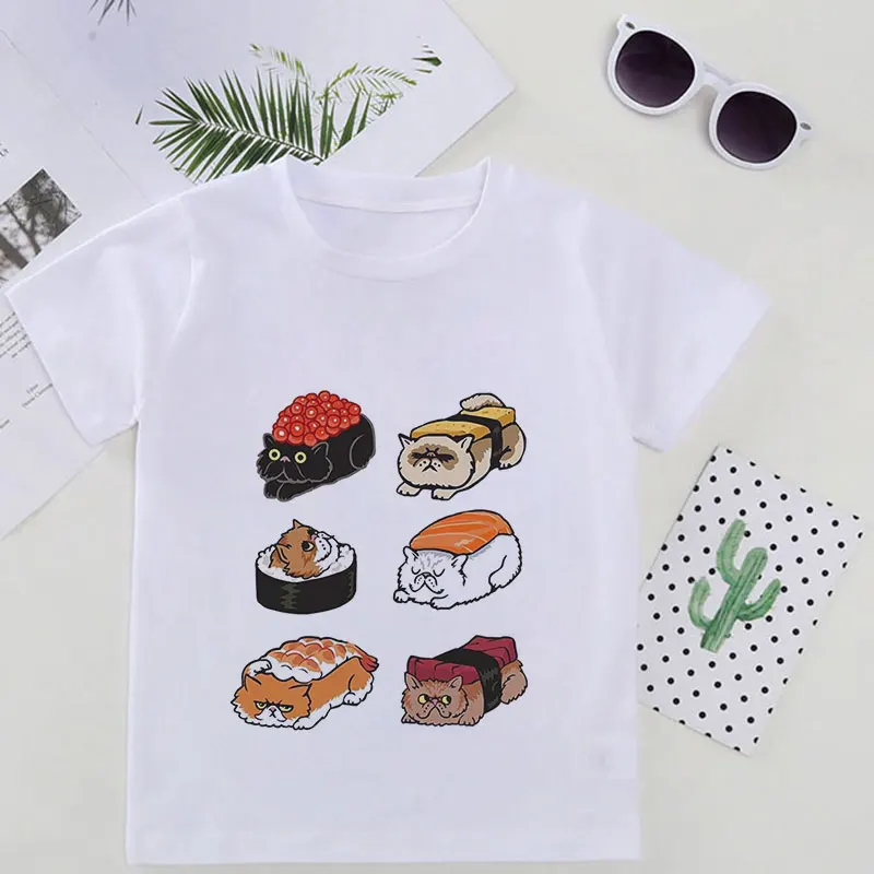 Футболка унисекс, с принтом суши, кошки и панды, для мальчиков 2-9 лет