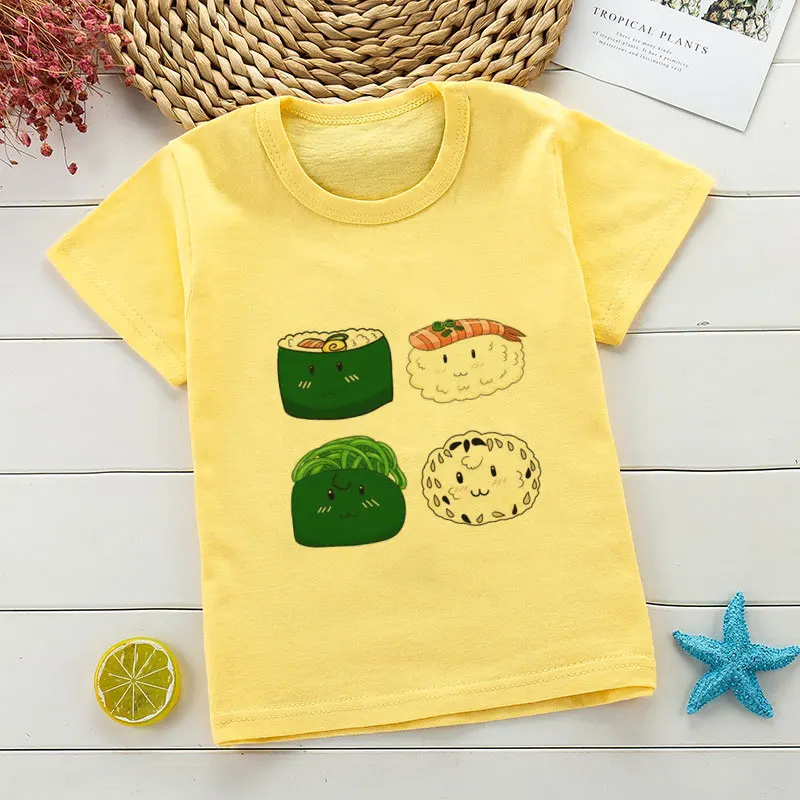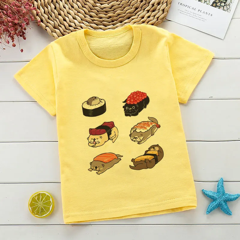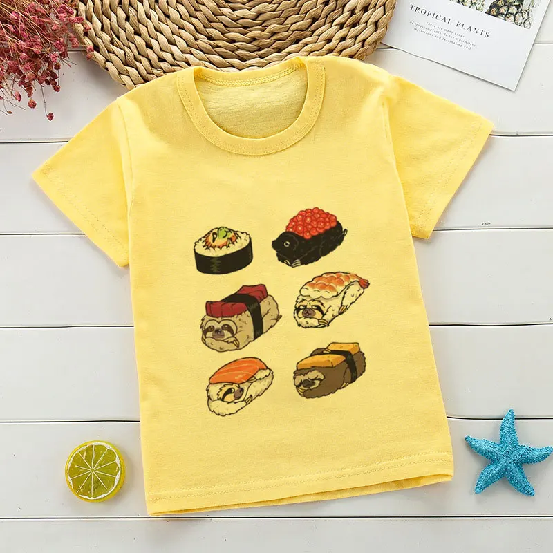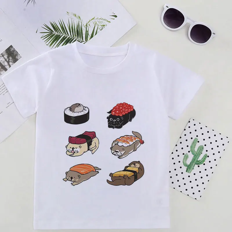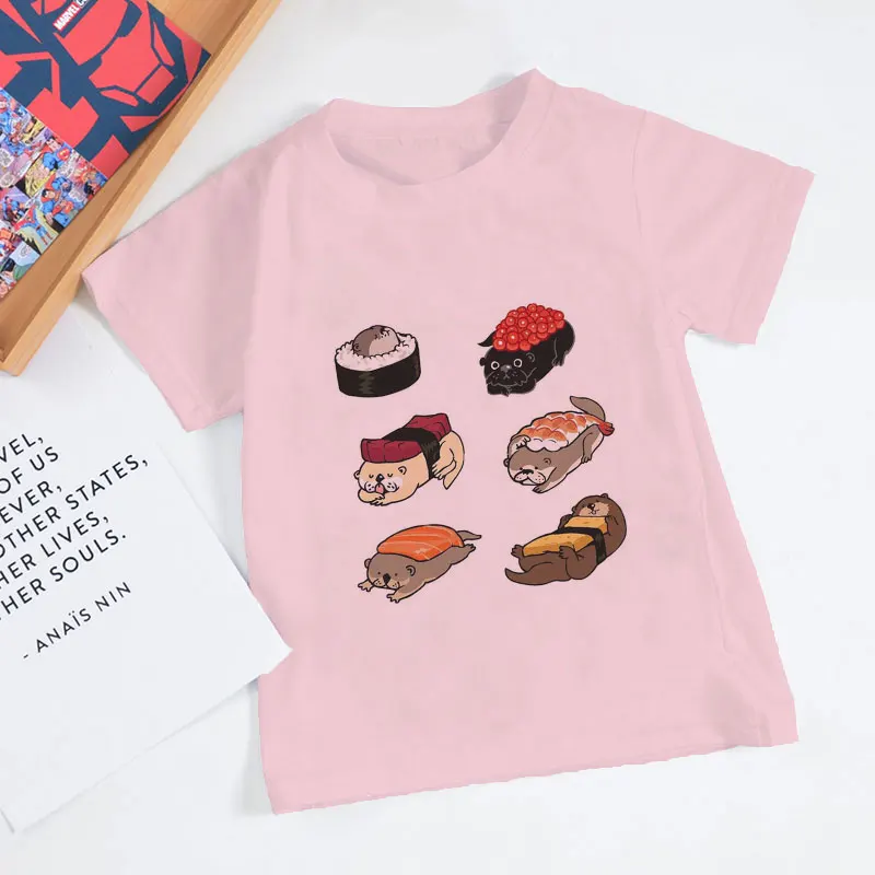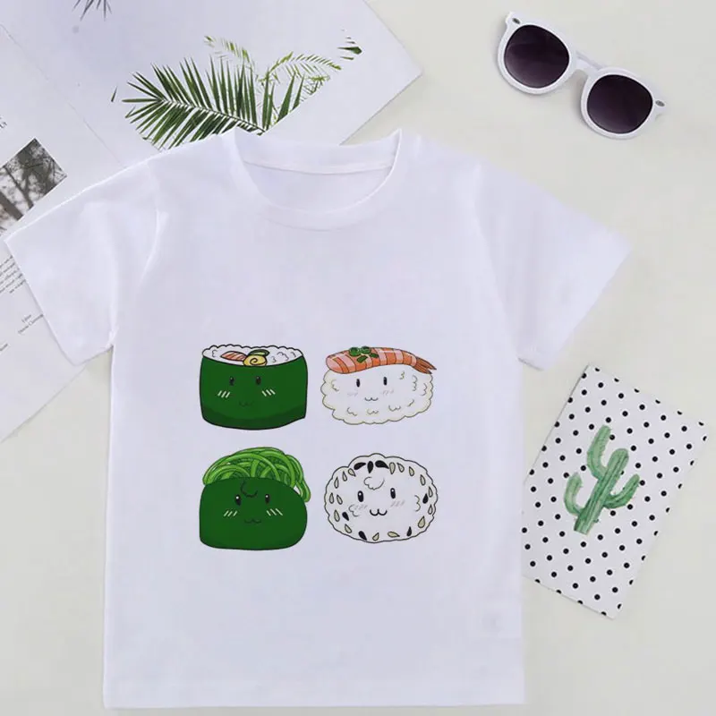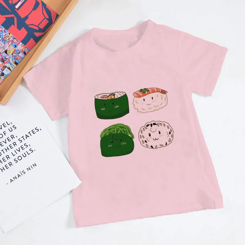 Футболка унисекс, с принтом суши, кошки и панды, для мальчиков 2-9 лет