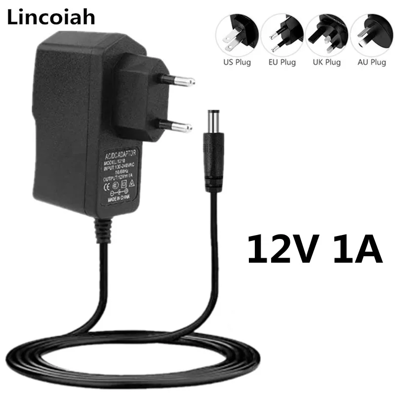 Адаптер переменногопостоянного тока, 12 В, 1 А, переменный ток 100-240 В, преобразователь, адаптер 12 В, вольт, зарядное устройство, источник питания с вилкой для ЕС и США, постоянный ток 5,5*2,1 мм для камеры видеонаблюдения