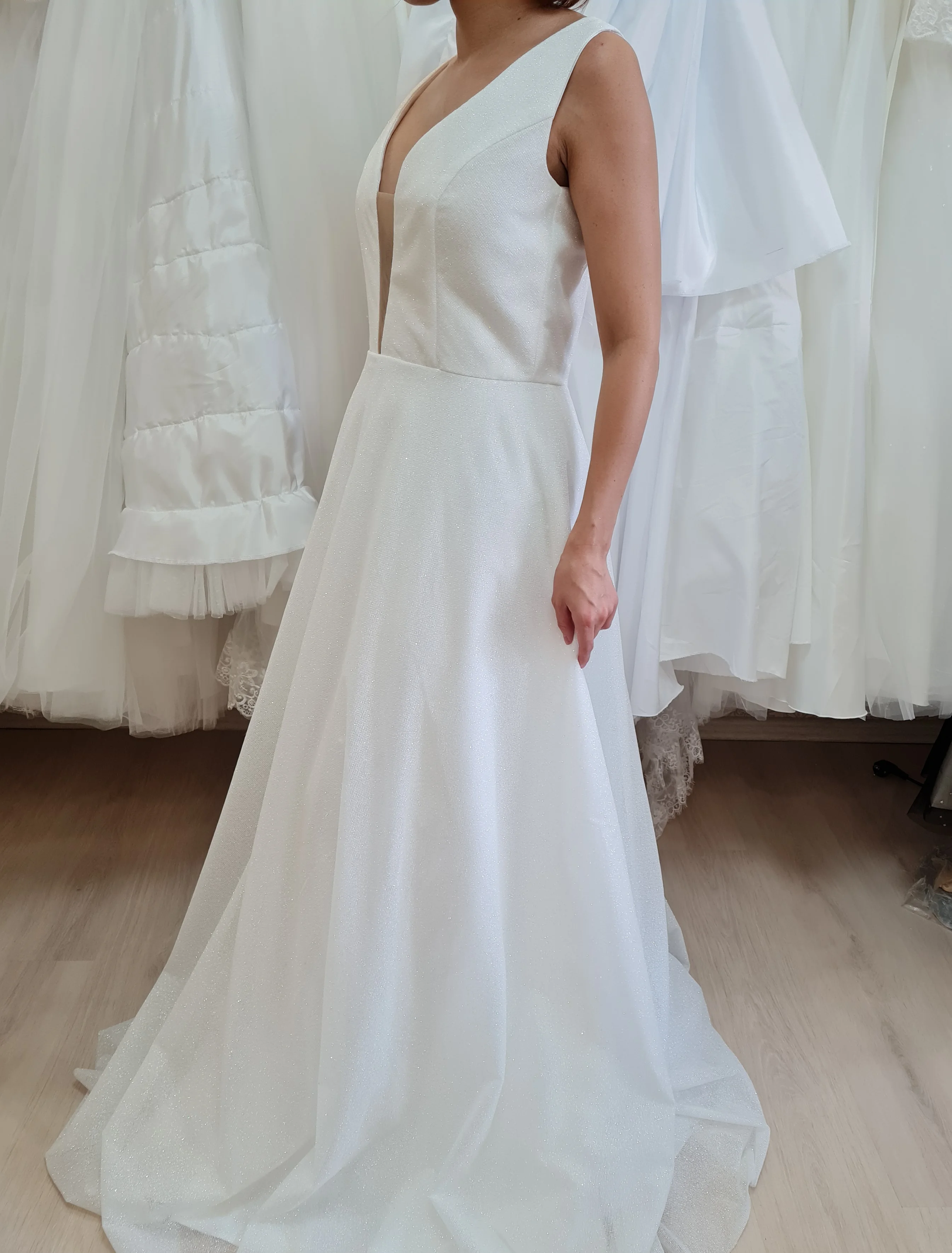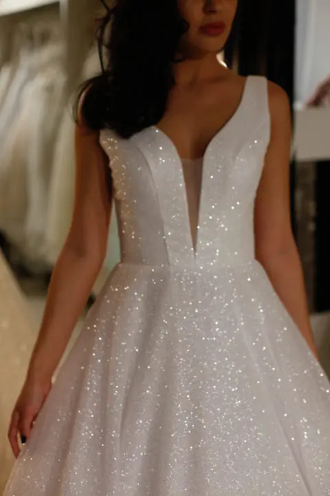 Блестящее свадебное платье А-силуэт глиттер на юбке