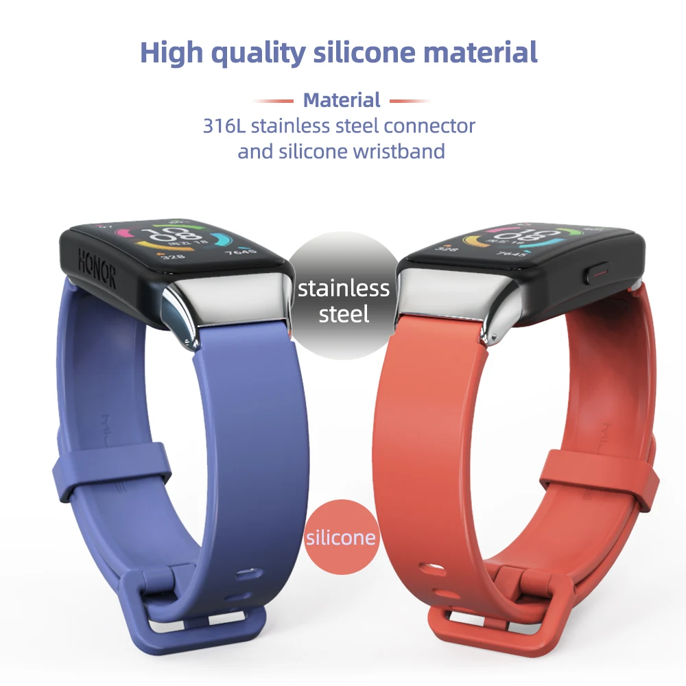 ●Высококачественный силиконовый материал ●Мягкий и приятный для кожи ●Подходит для: Huawei band 6 и honor band 6 ● Материал: разъем из нержавеющей стали 316L и силиконовый браслет ●Более Короткий разъем в ограниченном пространстве, чтобы сделать продукт более красивым.