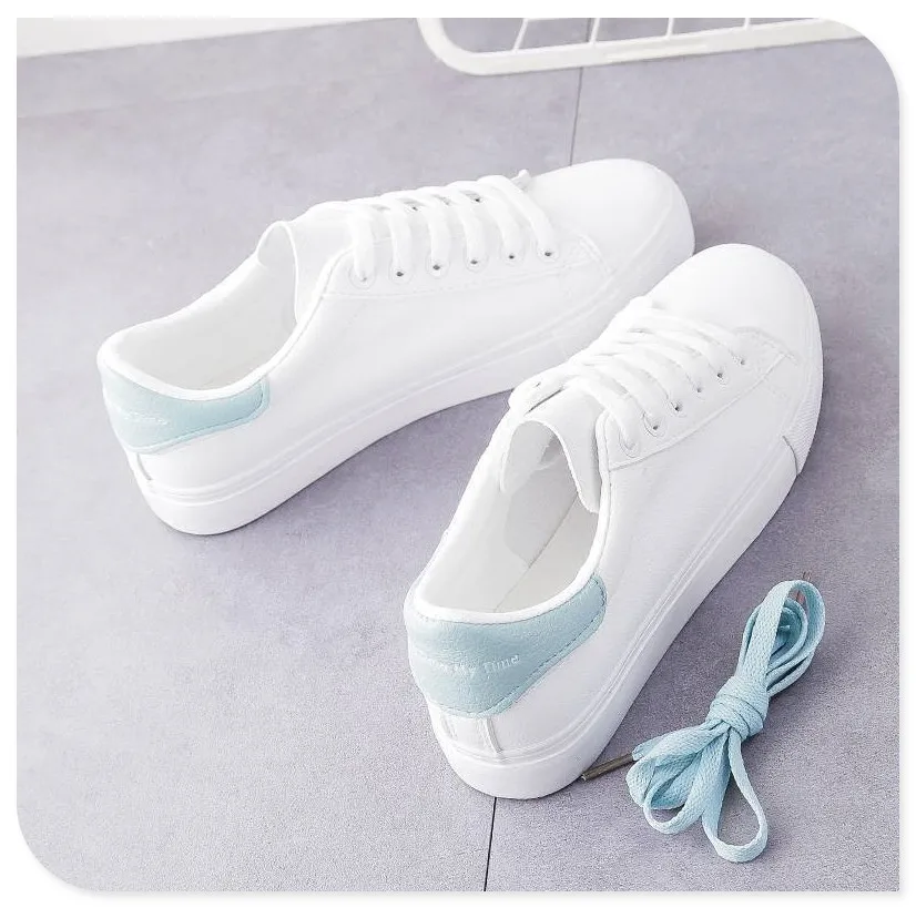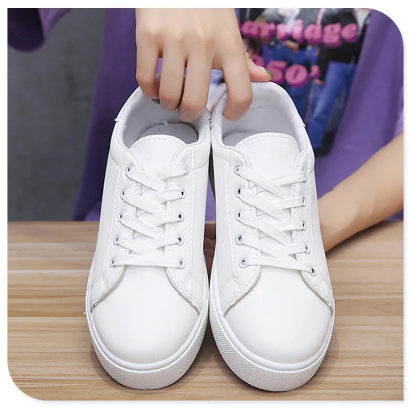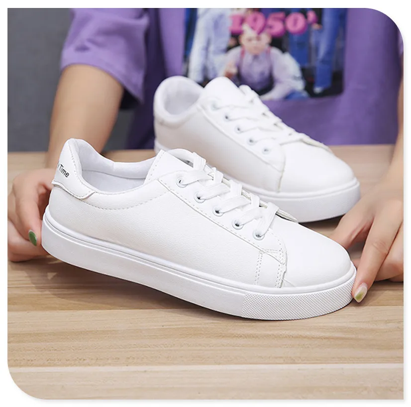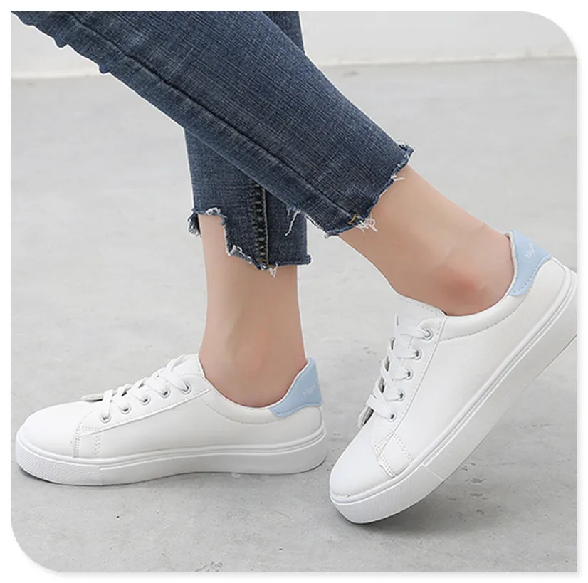 Женская обувь на плоской подошве; Повседневные белые весенне-осенние модные женские кроссовки на шнуровке; Дышащая Нескользящая уличная Резиновая женская обувь