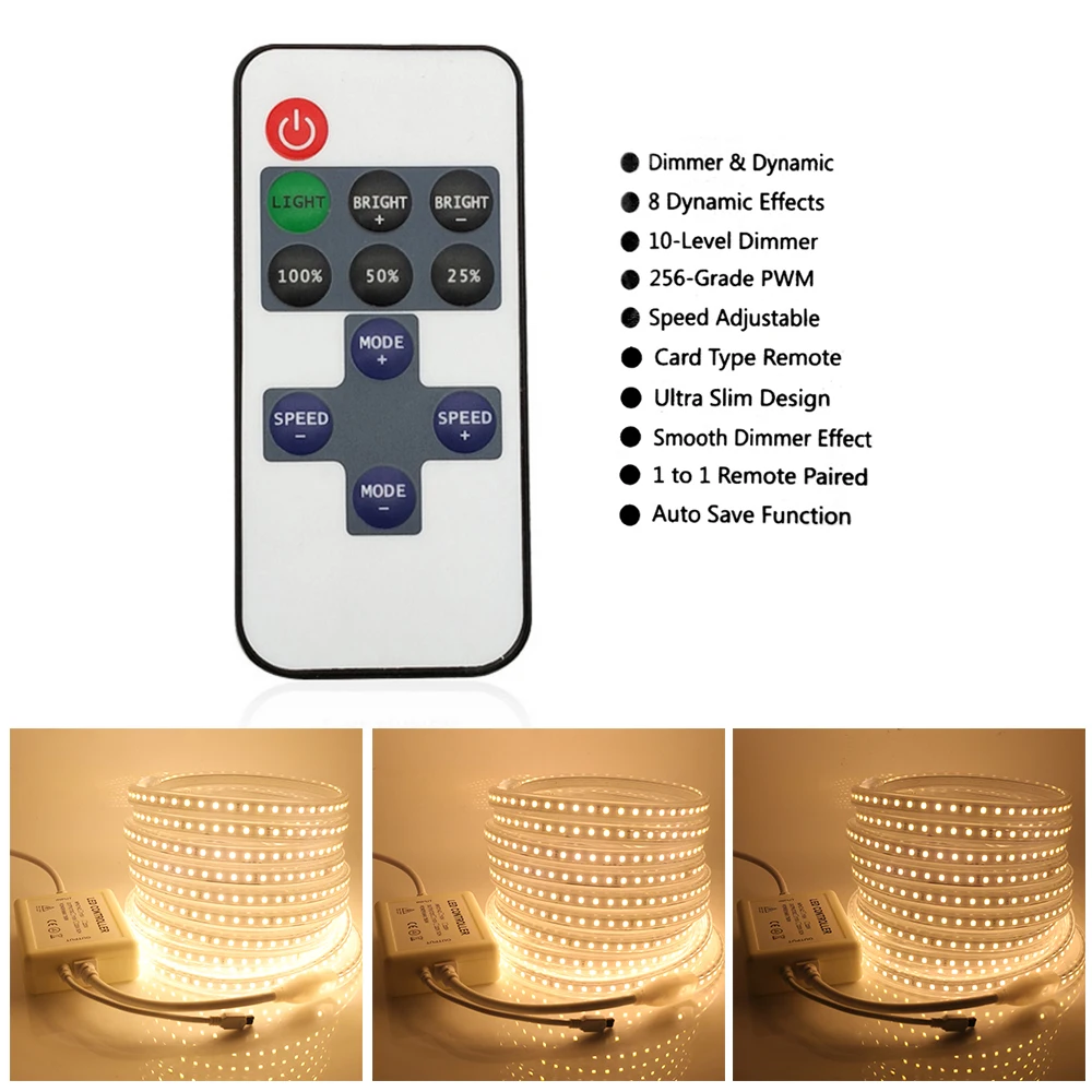 Гибкая светодиодная лента с регулируемой яркостью, 110 В, 220 В, SMD2835, 11 кнопок