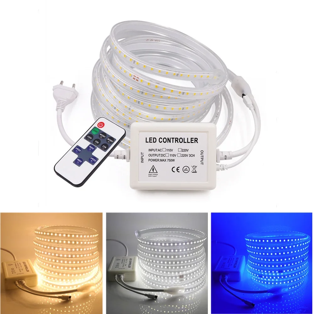 Светодиодная лента с регулируемой яркостью 110 В 220 В SMD2835 с 11key пультом дистанционного управления, гибкие светильники, высокая яркость, водонепроницаемая лента, лампа