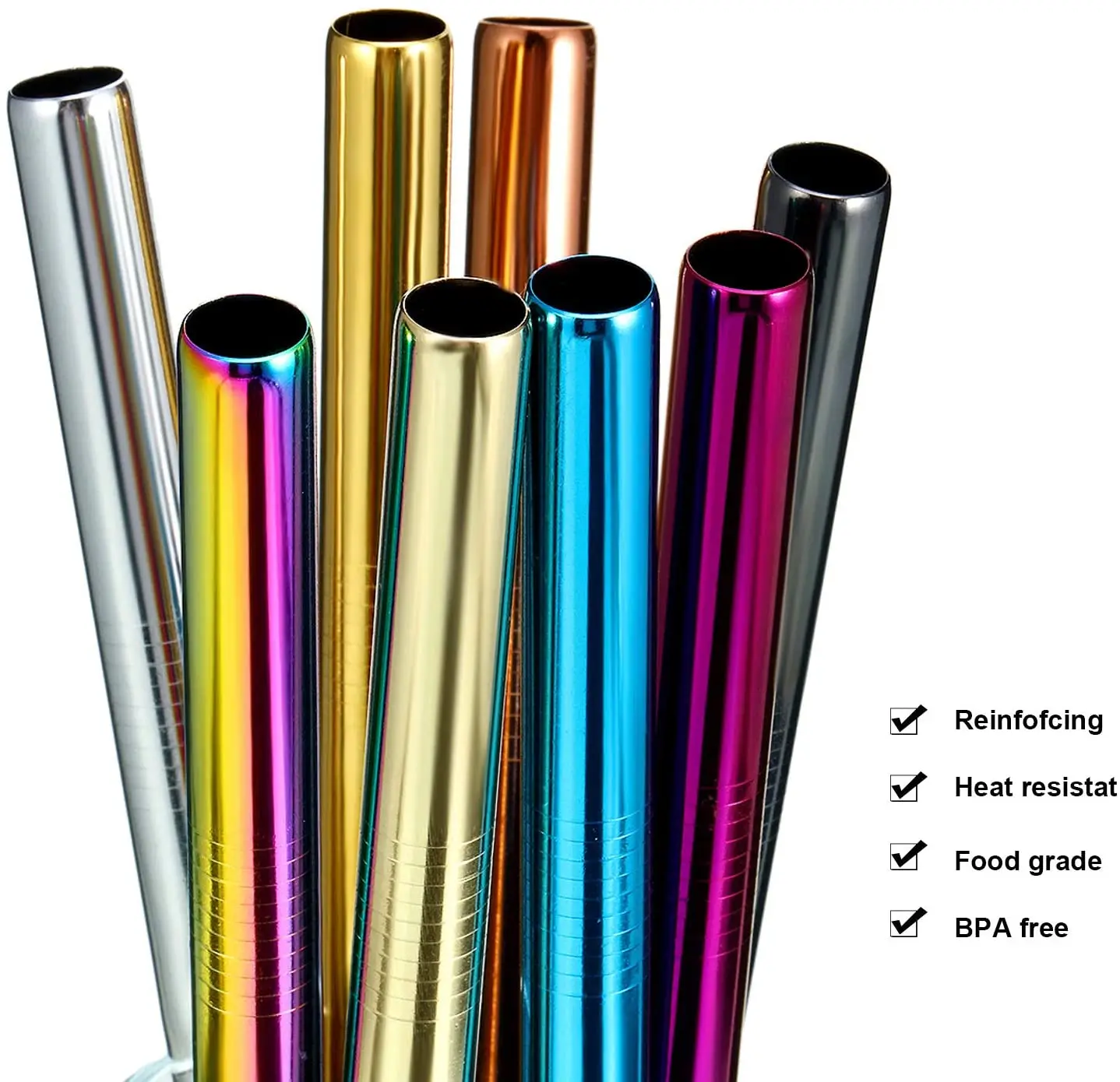 Многоразовые соломинки Boba 304 из нержавеющей стали, 4 шт., металлические соломинки для питья, коктейлей с пузырьковыми чаями, молочных коктейлей, шириной 12 мм