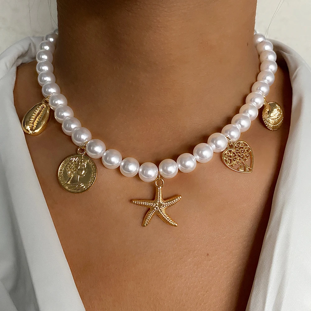 Женское Ожерелье IPARAM с кулоном из жемчуга и ракушек, цепочка-чокер в богемном стиле с подвеской в форме сердца, летняя цепочка, Подарочная бижутерия
