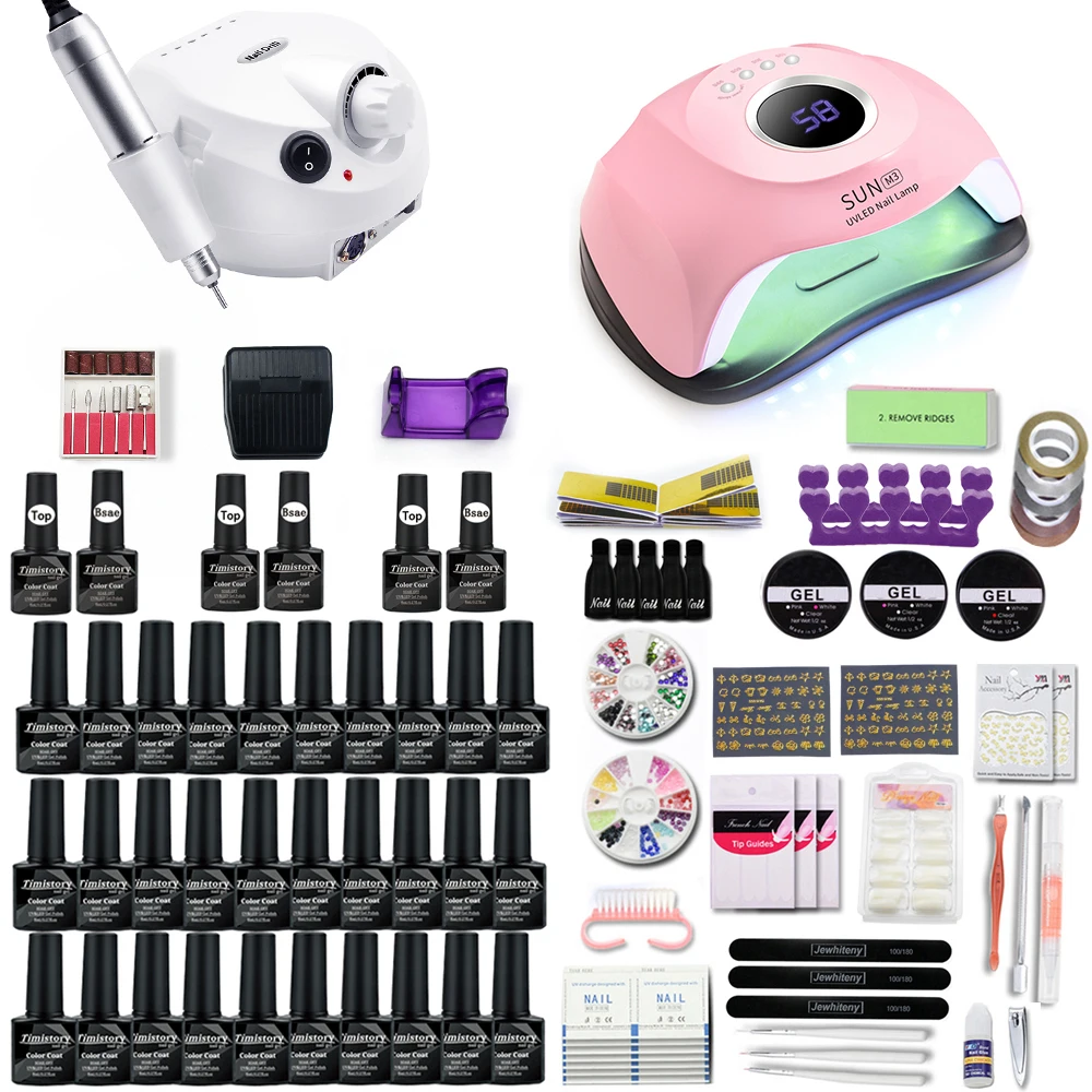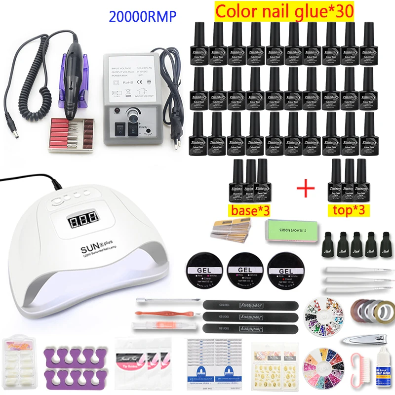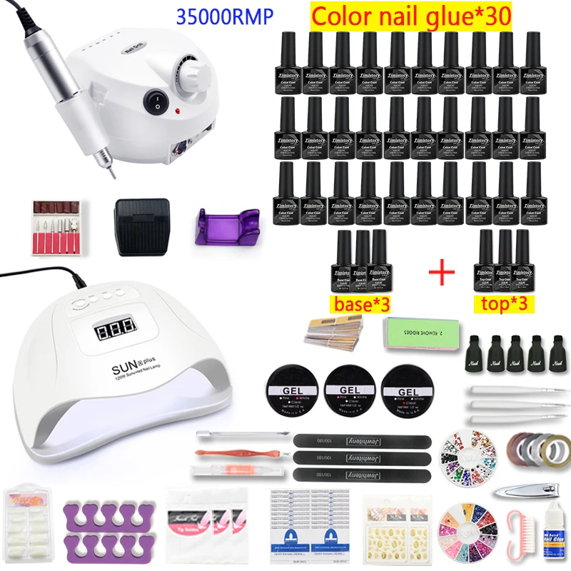 Маникюрный набор для ногтей, аппарат маникюрный 102030Цветной Гель-лак для ногтей Вт с УФсветодиодной лампой и 35000RMP