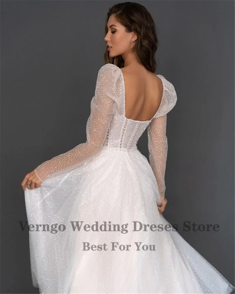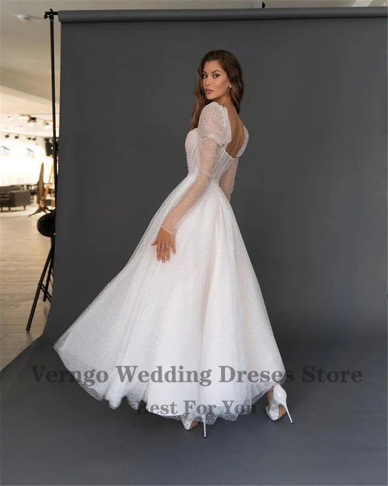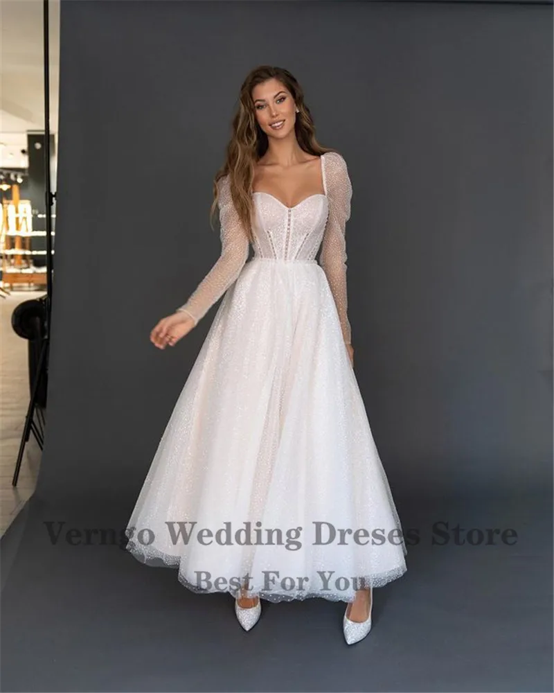 Блестящие трапециевидные свадебные платья в горошек Verngo, Длинные свадебные платья до щиколотки с сердечком, неформальные вечерние платья