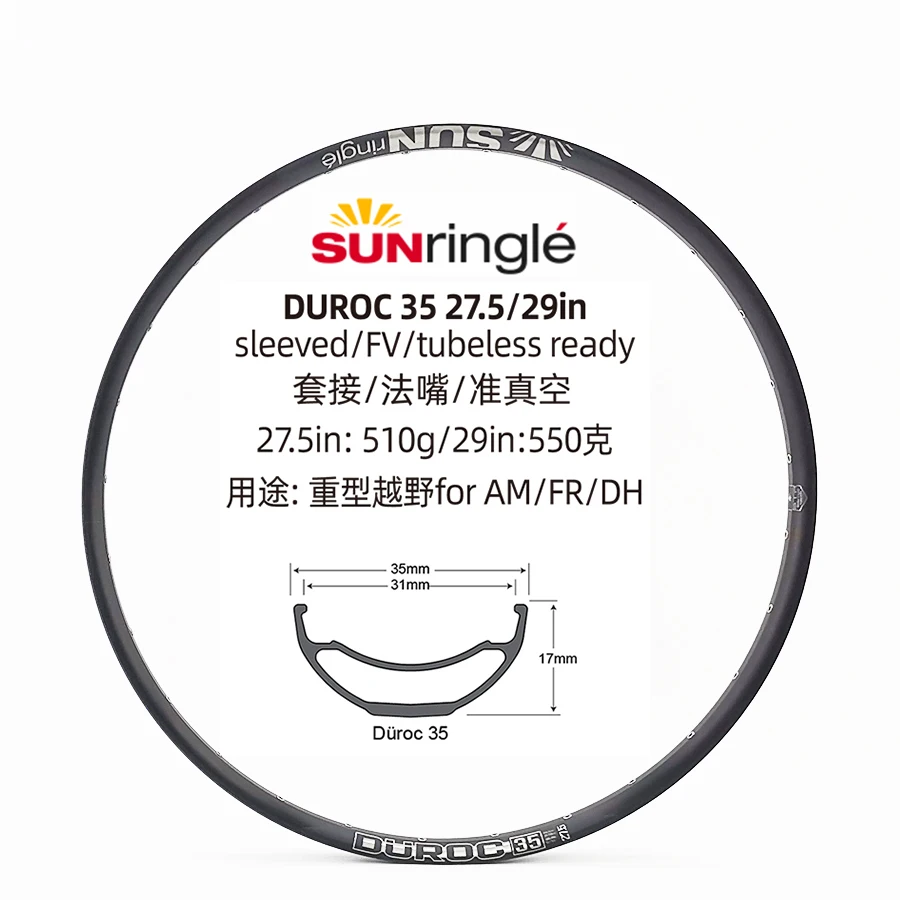 SUNRingle sun горный велосипед обод 27,5 29 дюймов DUROC 35 vacuum XC AM FR DH