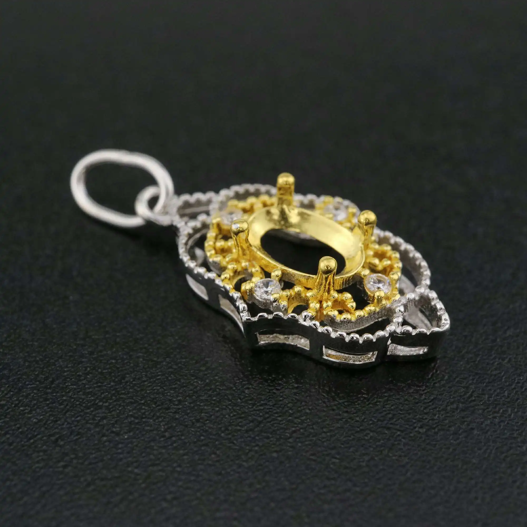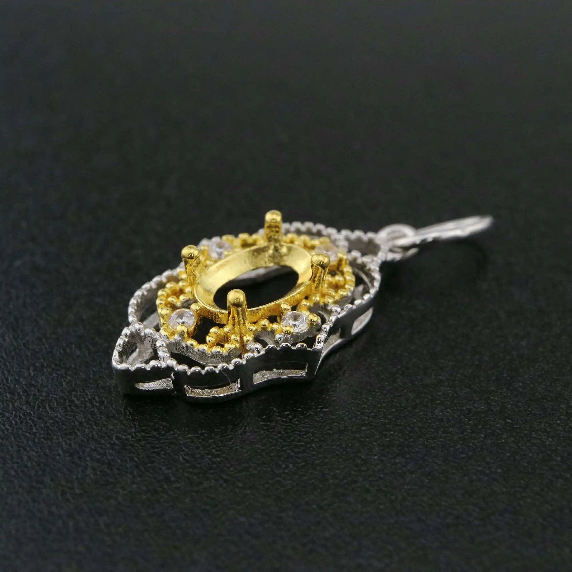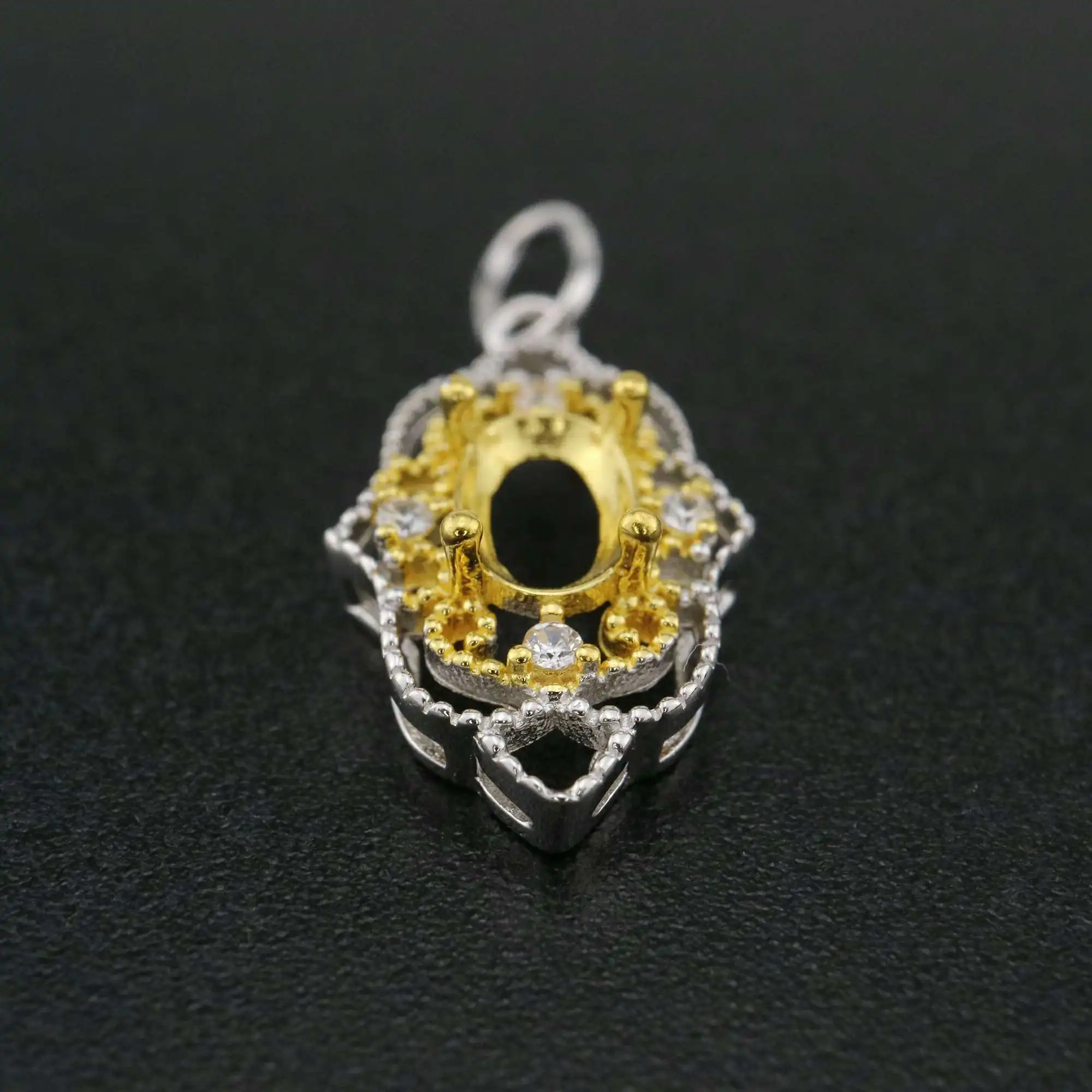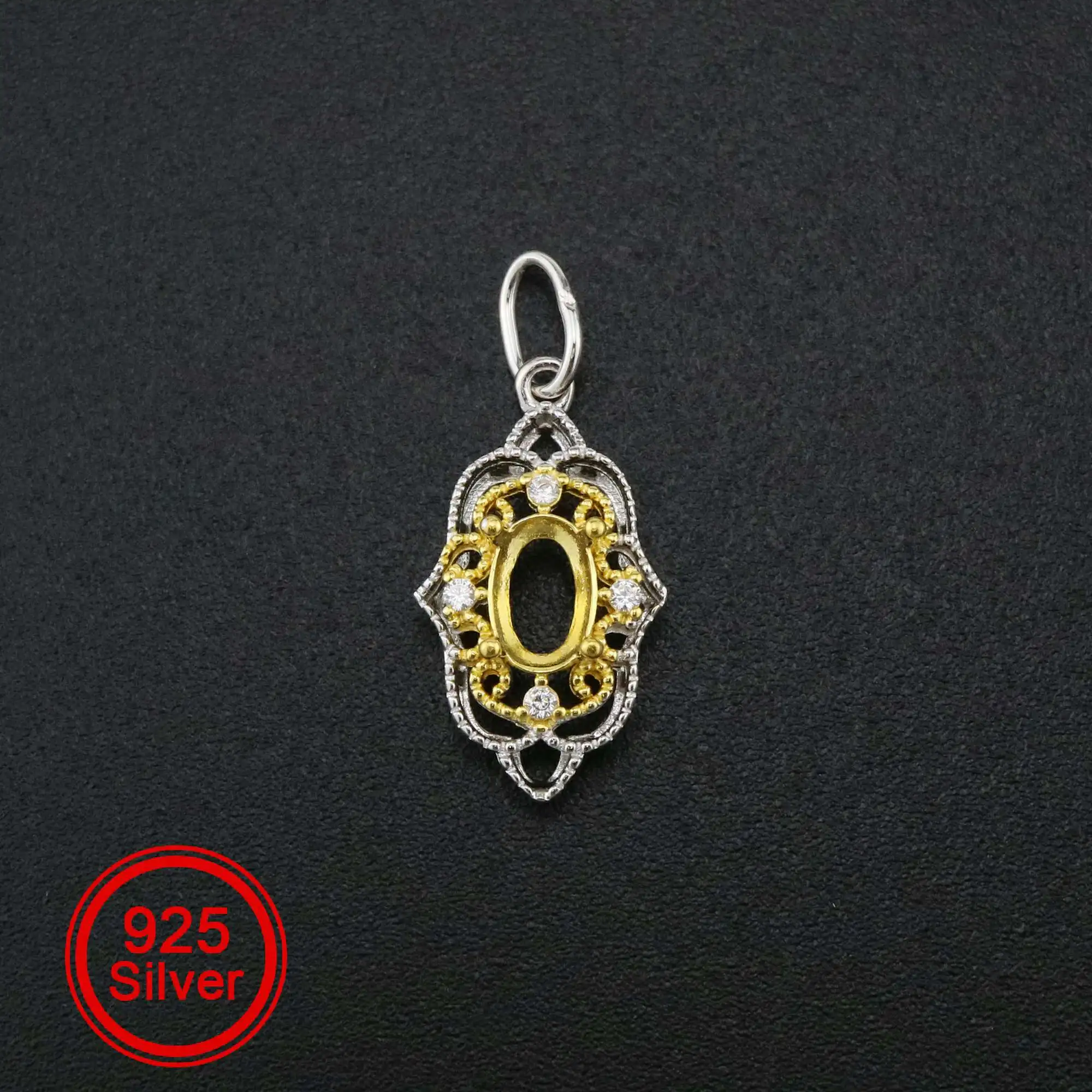1 шт., размер: 4x6 мм овальные зубец Настройки Подвесные Винтаж Стиль Позолоченные твердый 925 пробы серебряный шарм рамка лоток для самостоятельного изготовления 1421127