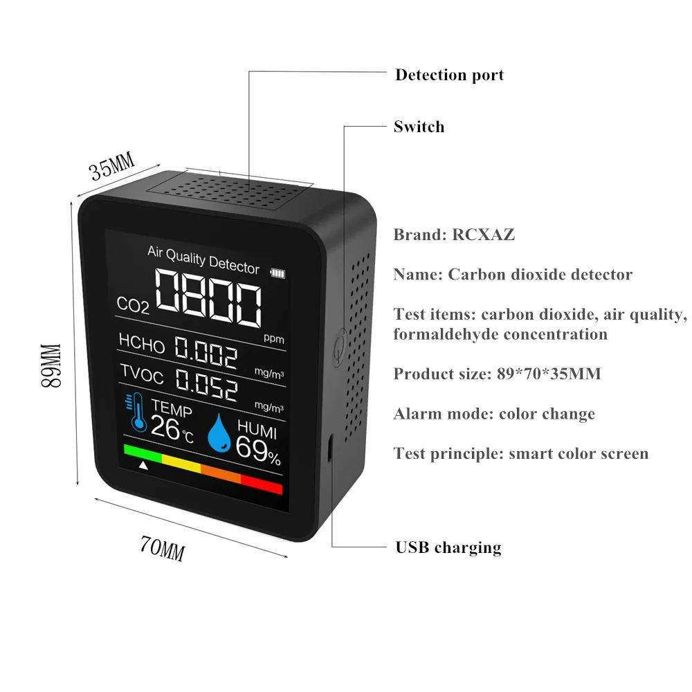 Портативный детектор CO2 5 в 1, умный детектор качества воздуха, датчик температуры и влажности, углеродный Диоксид