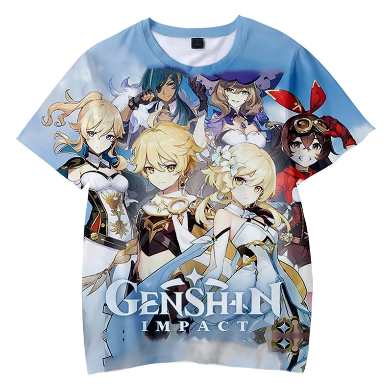 Новая футболка с аниме-играми, уличная одежда с 3D принтом Genshin ...
