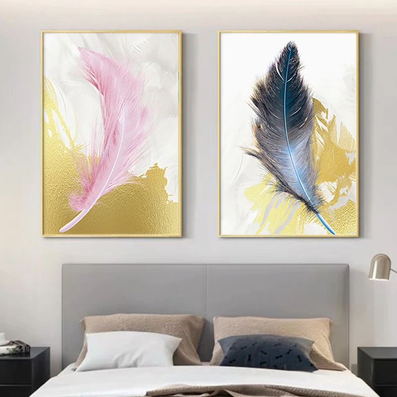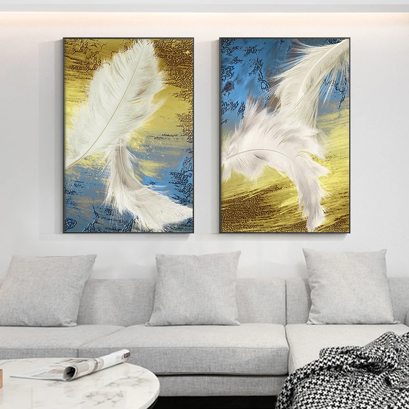 Роскошный декор, абстрактная живопись, интерьер, Золотая фольга, перо, холст, настенный плакат, Современный домашний декор, картина в скандинавском стиле для гостиной