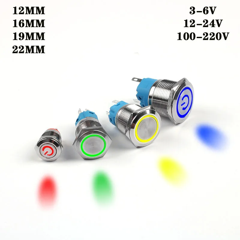 Переключатель питания двигателя автомобиля, металлический, водонепроницаемый, с мгновенной блокировкой светильник 12161922 мм, 3 в, 5 В, 12 В, 24 В, 220 В