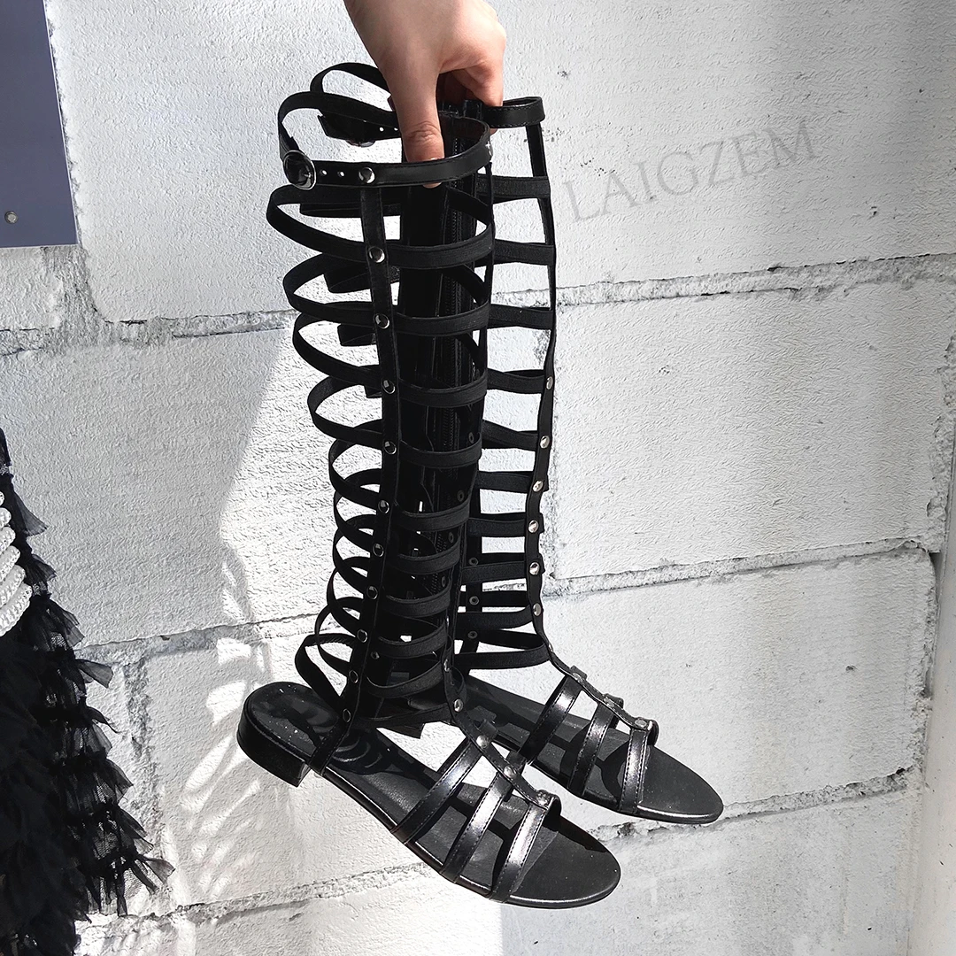 Женские босоножки из искусственной кожи LAIGZEM, черные босоножки н...