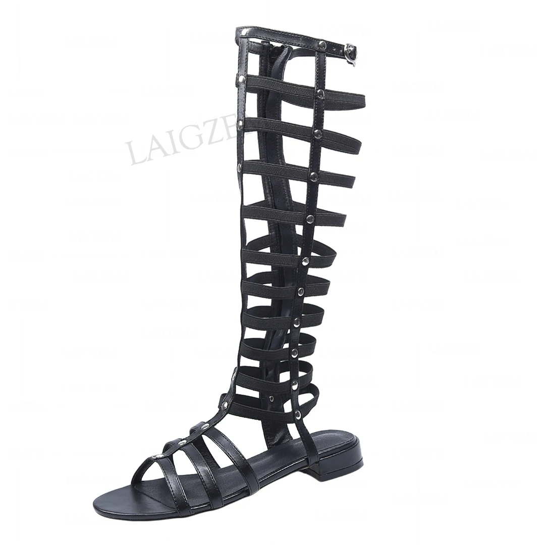 LAIGZEM/женские босоножки на низком каблуке; Черные летние туфли на молнии сбоку с широким эластичным ремешком; Zapatillas; Большие размеры 39, 40, 42, 43