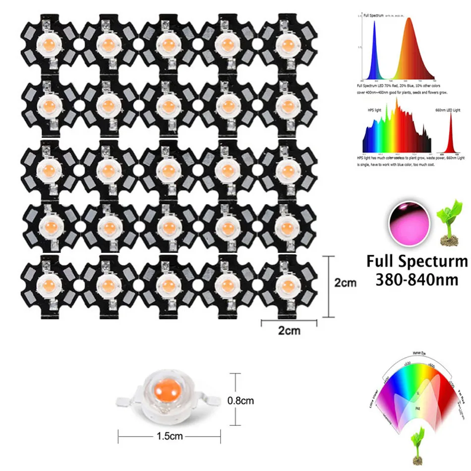 100 шт. 3 Вт 380-840nm полный спектр led с 20 мм pcb star