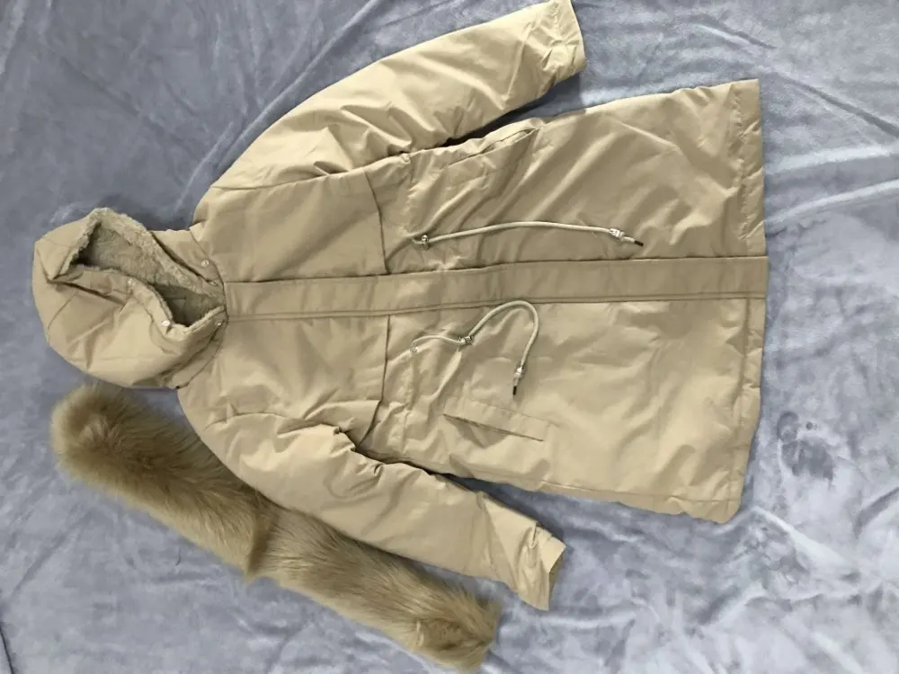 Приятный нежный цвет, кажется тёплой. Жаль, что рукава, как это у китайских парок принято, без меха и довольно узкие. Очень симпатичный мех на капюшоне (он пришёл в отдельном пакете и не был помят), хорошо выглядит. Немножко как-то странно верхняя ткань нависает над подкладкой, но, может быть, просто надо разгладить. Подошла на размер 52. Доставка DPD через постамат PickPoint всего 18 дней.