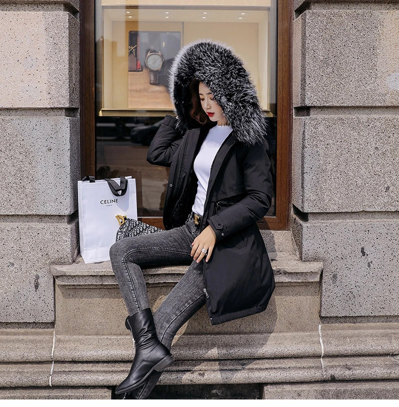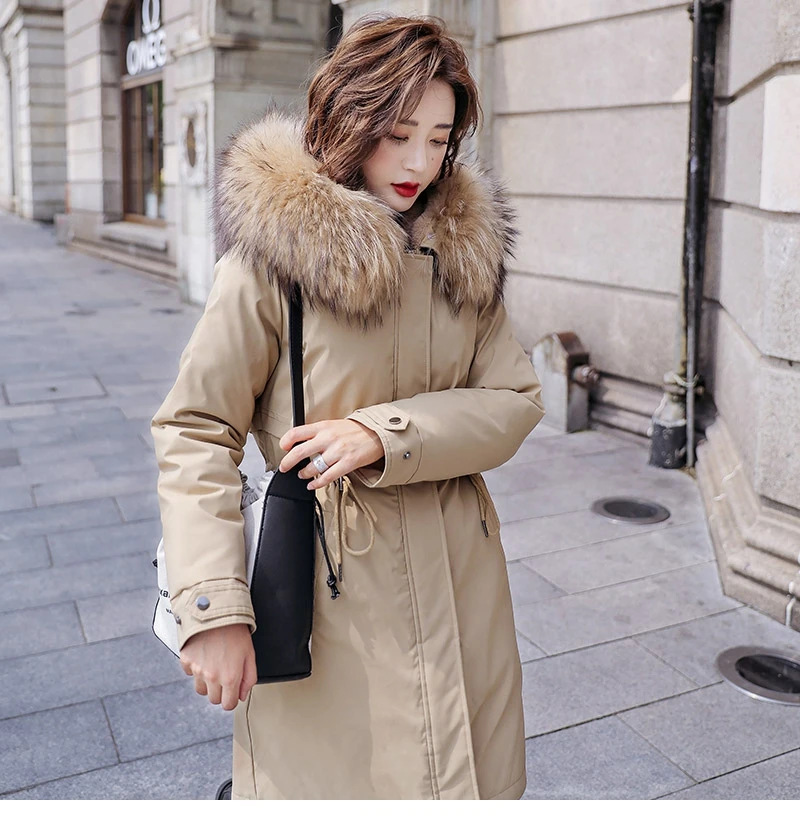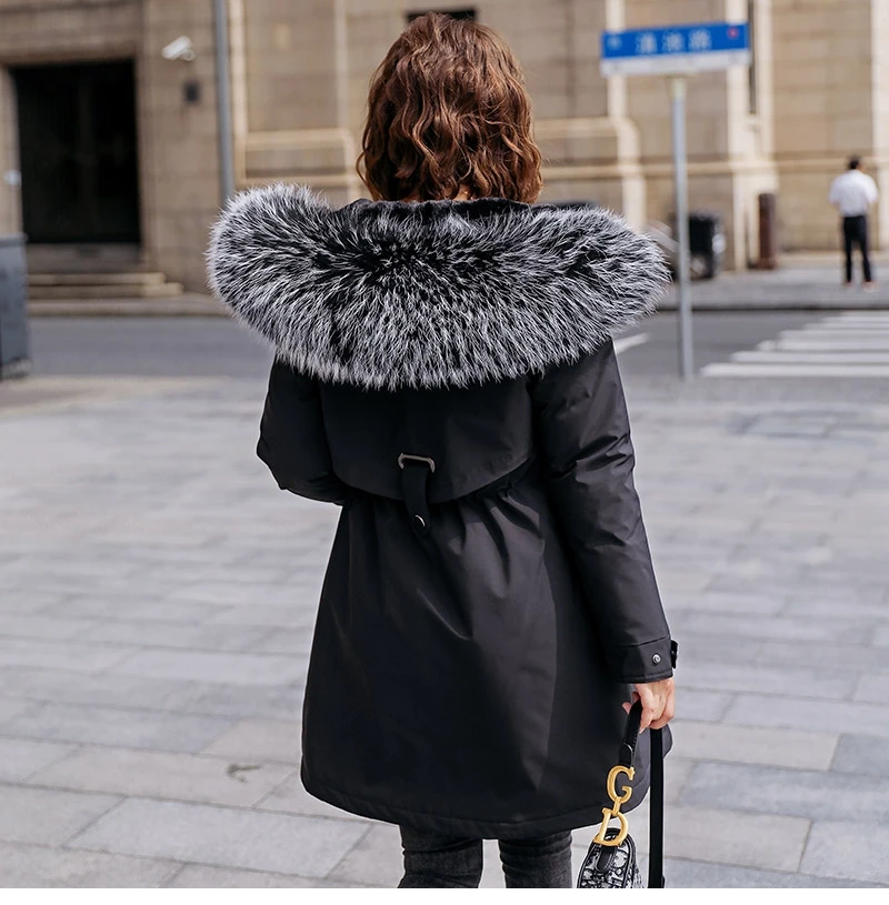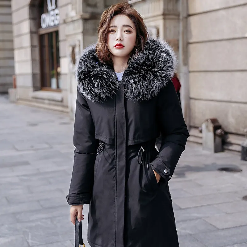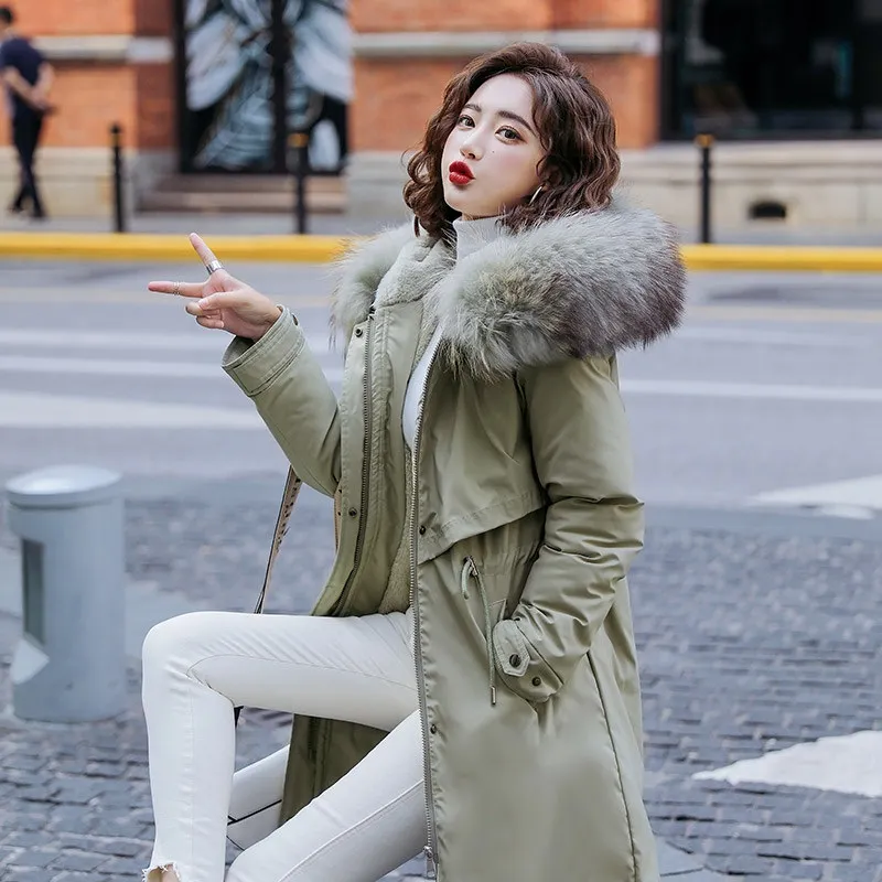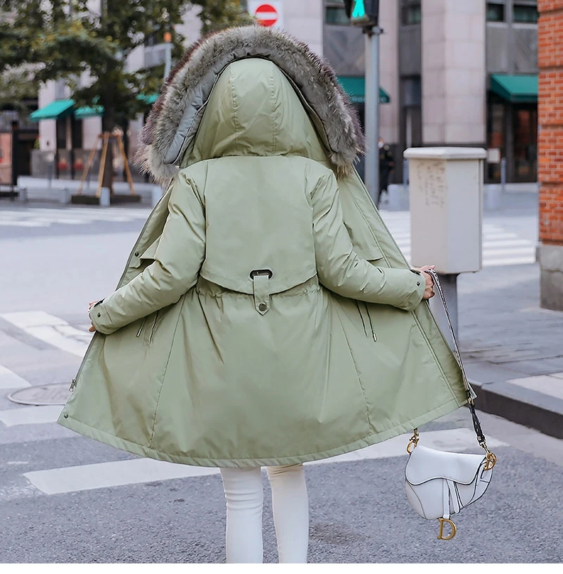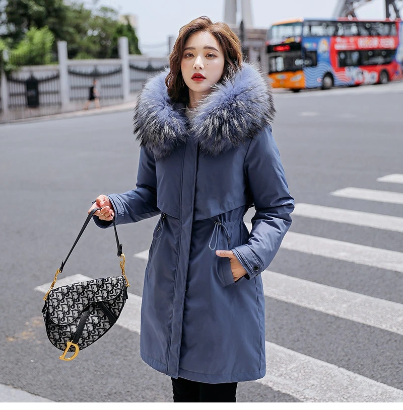 2022 новая хлопковая парка с подкладкой Parker, модная зимняя куртка с регулируемой талией и меховым воротником, Женская парка средней длины с капюшоном, пальто