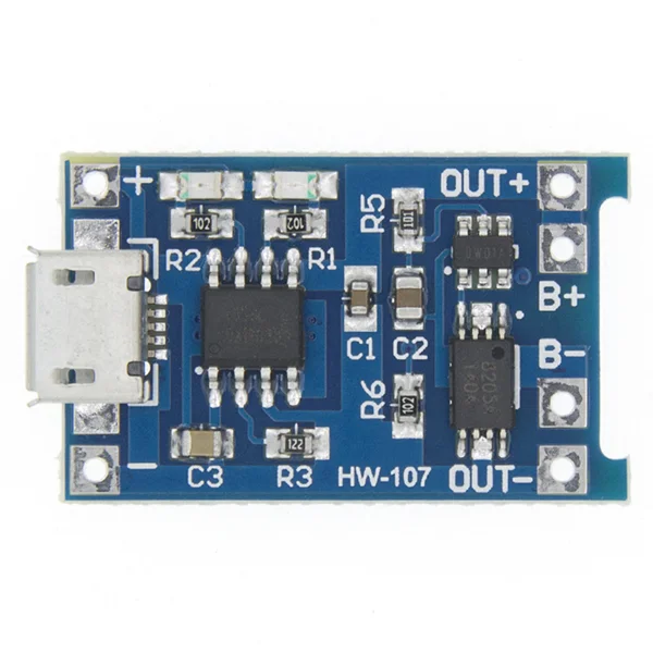 Этот модуль использует очень зрелый зарядный чип TP4056, с простым периферийным устройством