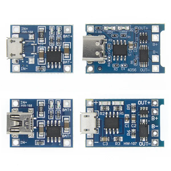 Зарядная плата TP4056 для литиевых батарей, 5 В, 1 А, Type-cMicroMini USB 18650, модуль зарядного устройства + Двойная функция защиты, Прямая поставка