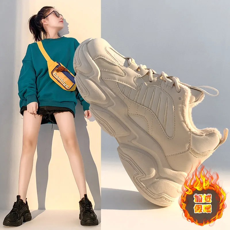 Женские кроссовки на массивной платформе, повседневные спортивные кроссовки с вулканизированной подошвой, плюшевая обувь для тренировок, для зимы, 2021