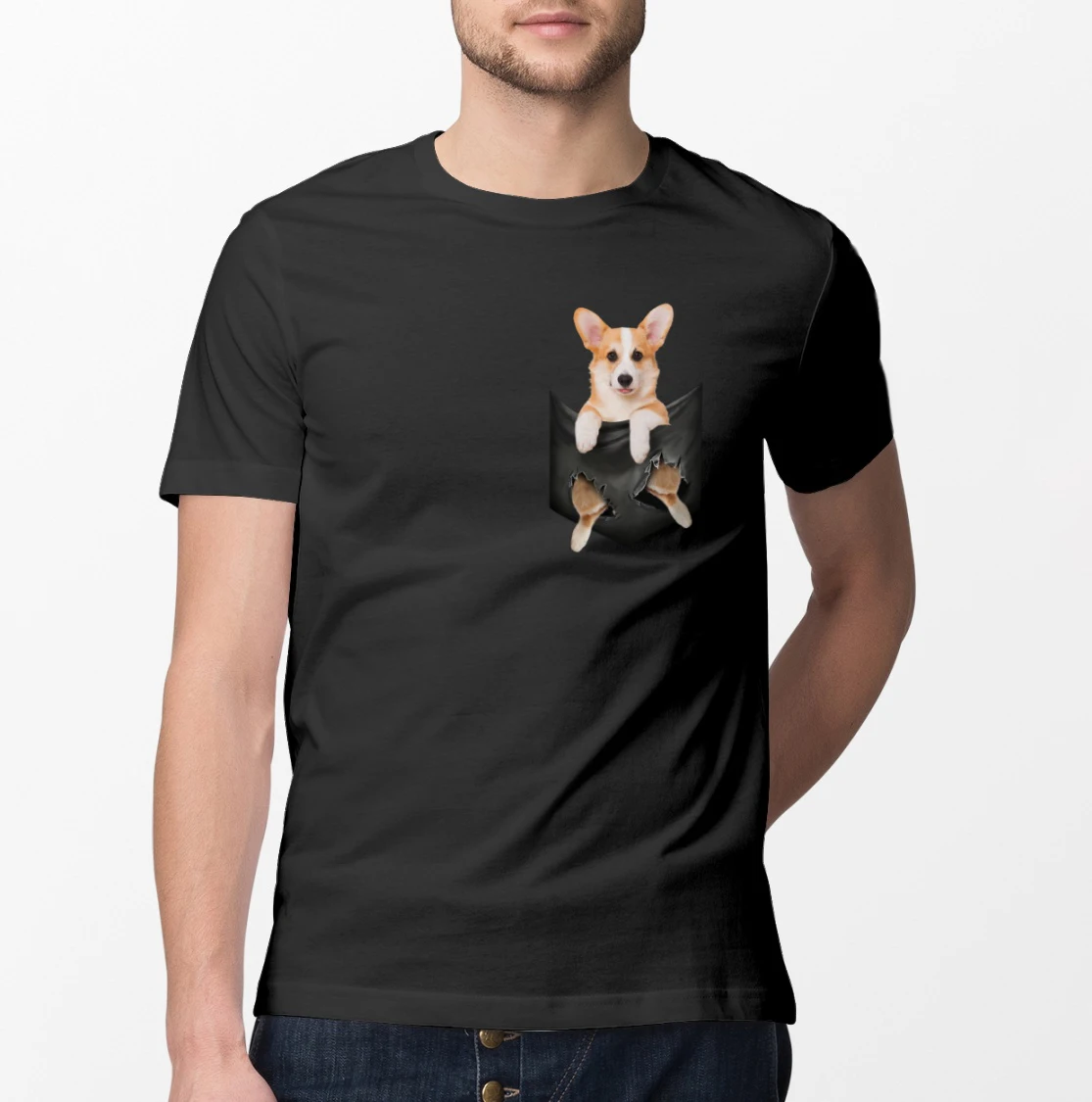 Хлопковая футболка CLOOCL с карманами, Милая футболка с принтом корги, мужские и женские рубашки, повседневные хлопковые черные футболки, топы