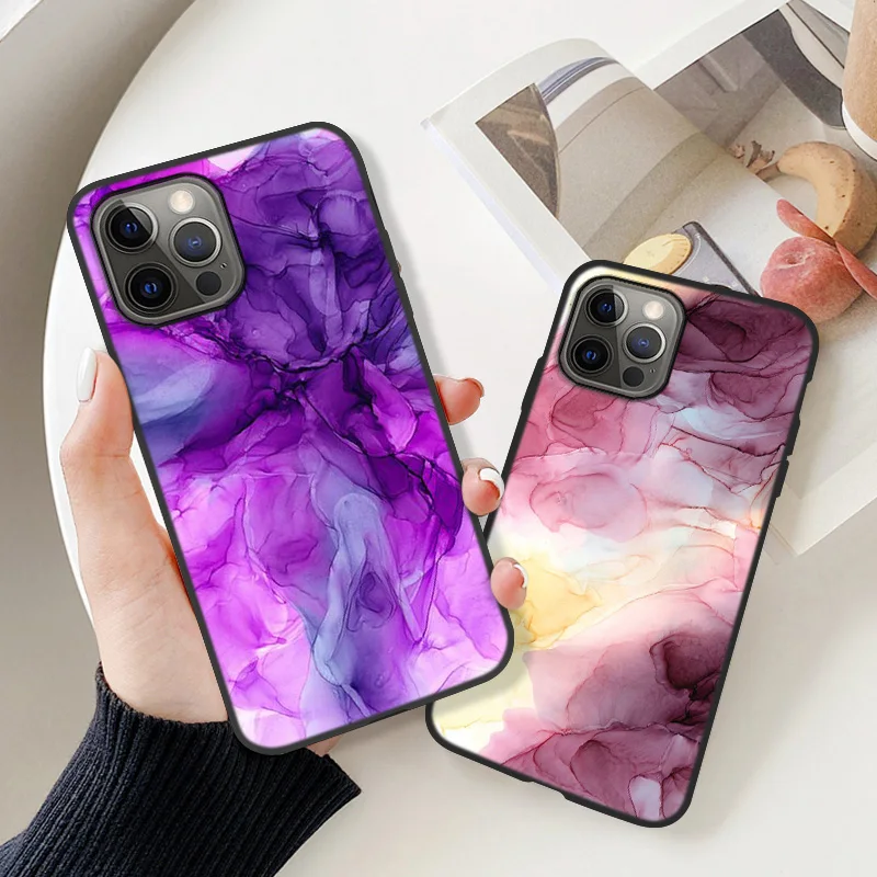 Luxury Black Soft Silicone With Patterns Painted Image Design