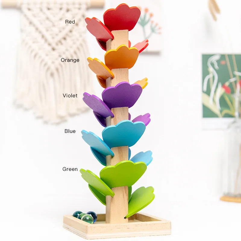 Деревянный конструктор по методике Монтессори, лепесток дерева, игрушка, Радужный трек, развивающие игрушки для детей, подарки, игра с мячом, листьями, башня, цветные бусины