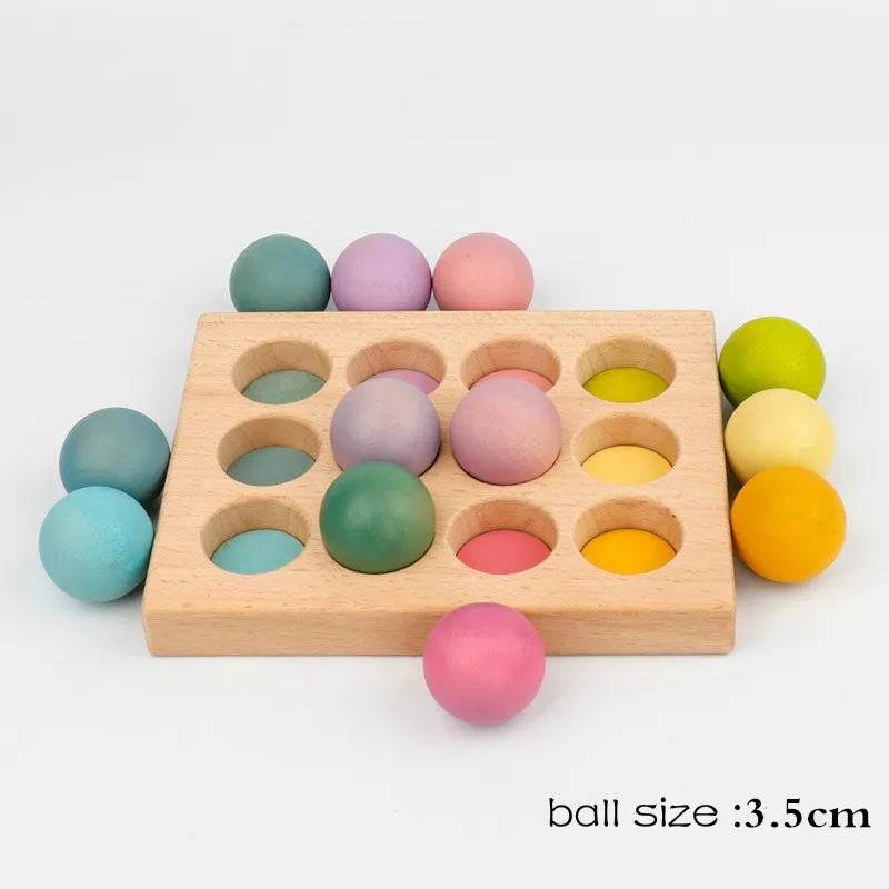 Деревянные строительные блоки Монтессори, игрушка в виде лепестков, радужная дорожка, обучающая игрушка для детей, подарки, мяч, игра, лист, башня, цветные бусины