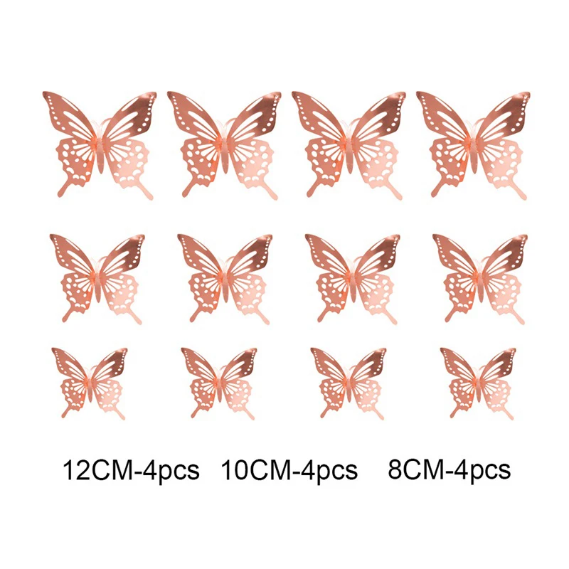12 шт. 3D наклейки на стену полые розовые Золотыесеребряные бабочки...