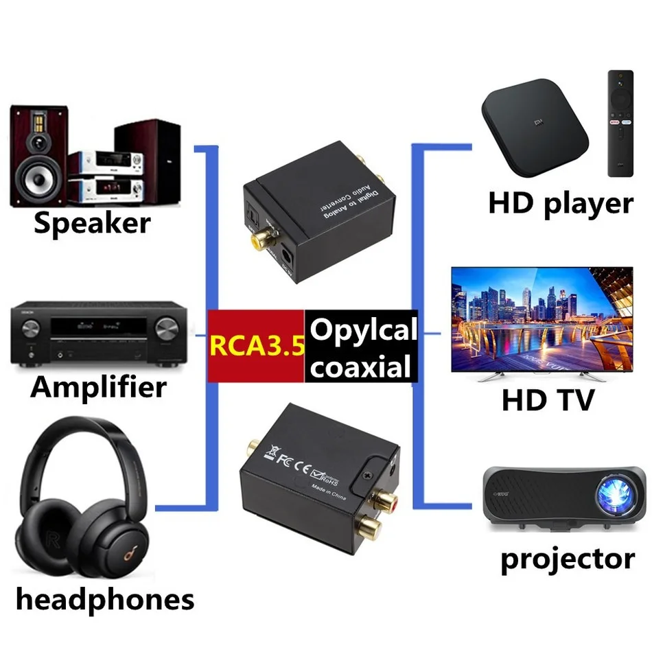 WVVMVV коаксиальный оптоволоконный цифро-аналоговый аудио разъем AUX 3,5 мм RCA LR конвертер SPDIF цифровой аудиодекодер усилитель