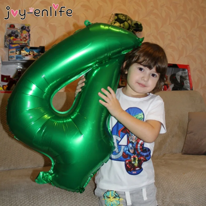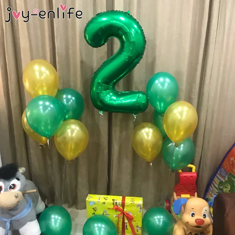 Воздушные шары из фольги в виде цифр зеленого цвета, декор для вече...
