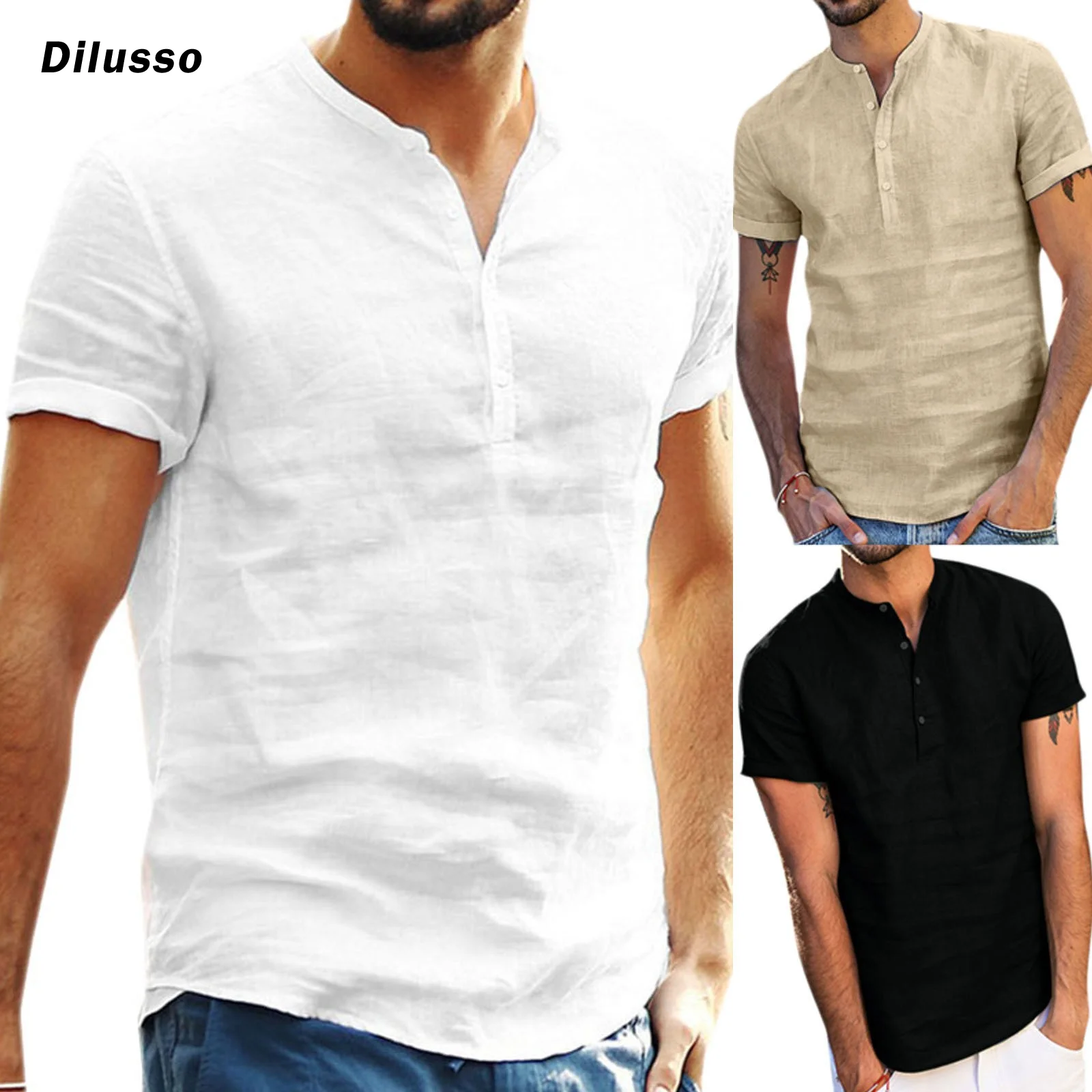 2021 горячая распродажа мужские футболки с коротким рукавом летние однотонные Цвет из хлопка и льна с воротником-стойкой повседневные пляжные Стиль повседневная одежда размера плюс