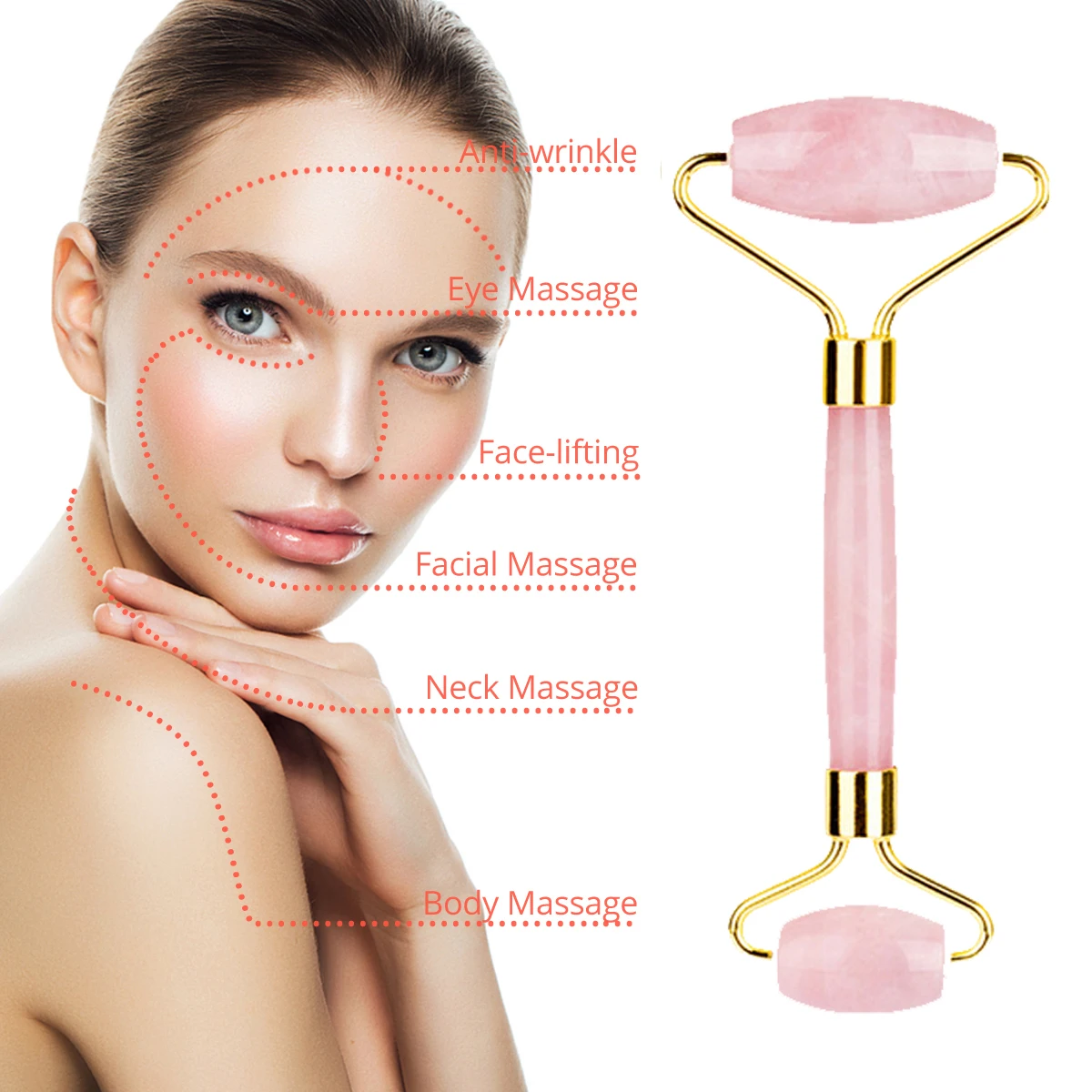 Бесшумный ролик из розового кварца для похудения, массажер для лица, ролик для массажа лица из натурального нефрита, инструмент для массажа кожи, скребок для гуаши
