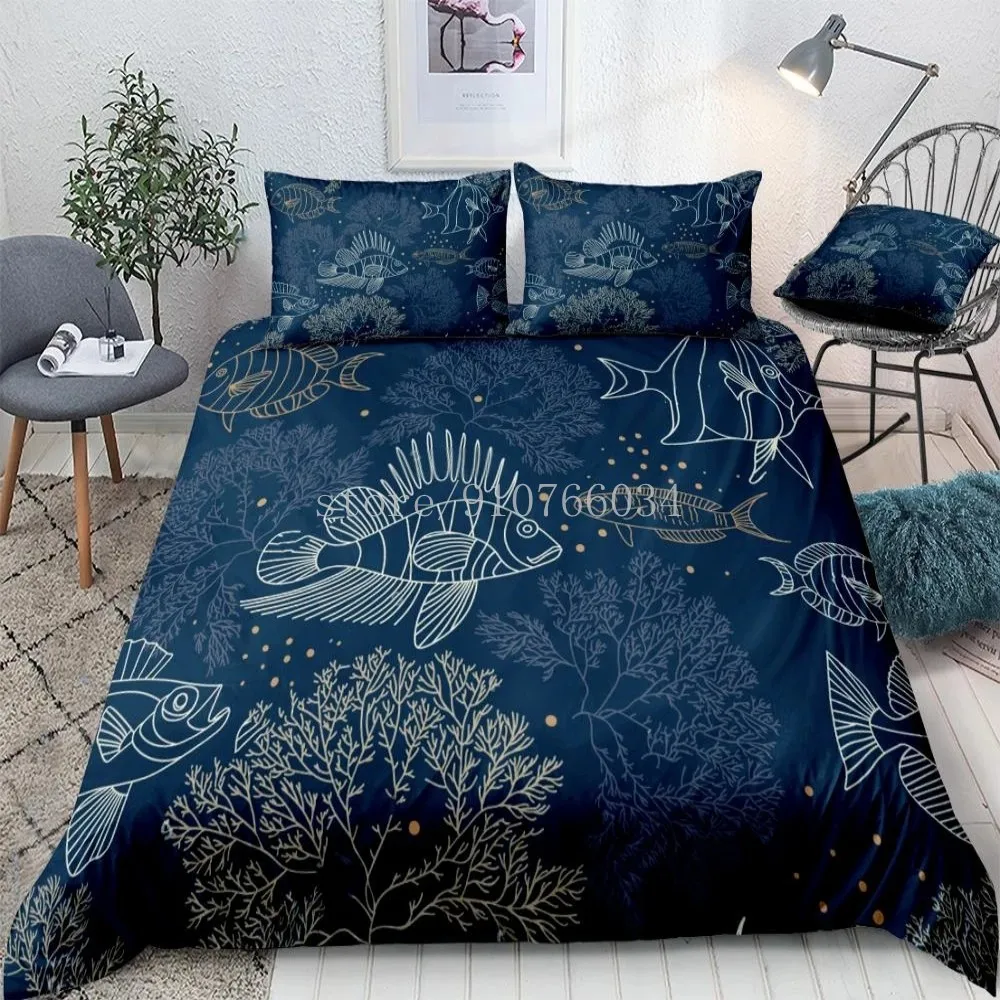 Комплект постельного белья Морская Черепаха, пододеяльник, наволочки, Королевский Комплект постельного белья с изображением черепахи, кораллового цвета, с картой, Королевский