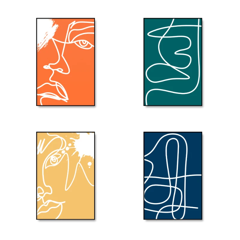 Абстрактная иллюстрация Анри Матисс линия лица коралловый лист холс...