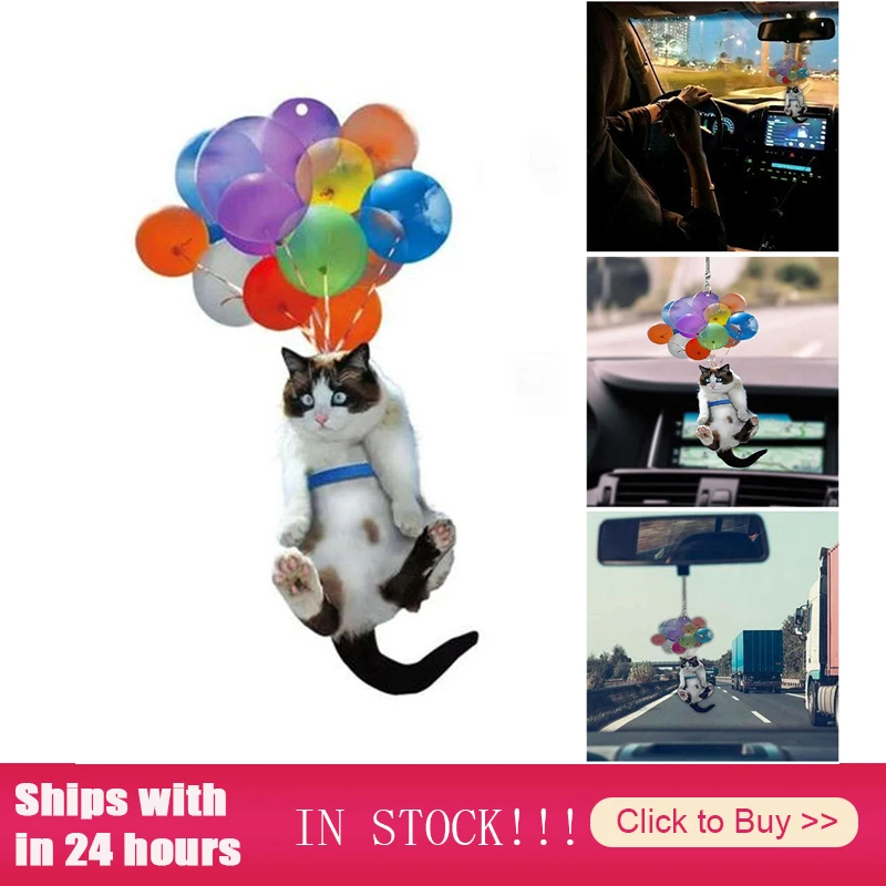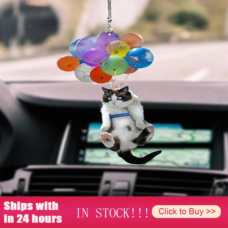 Новинка, подвеска в виде кота с воздушным шаром, подвеска в машину с милым котом, подвеска в виде котенка на зеркало заднего вида, украшение для автомобиля с сублимационной печатью