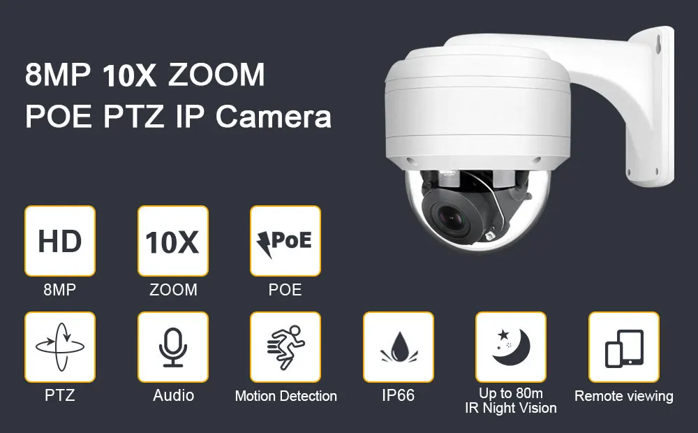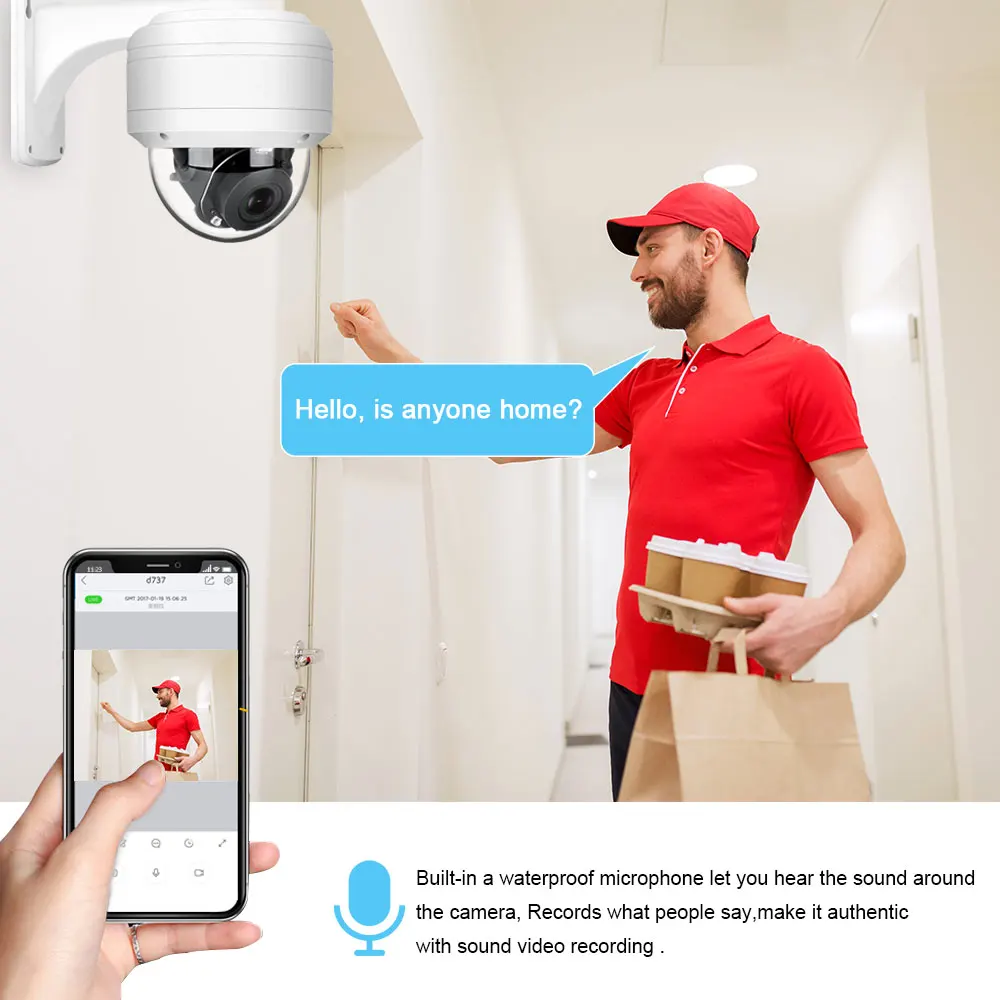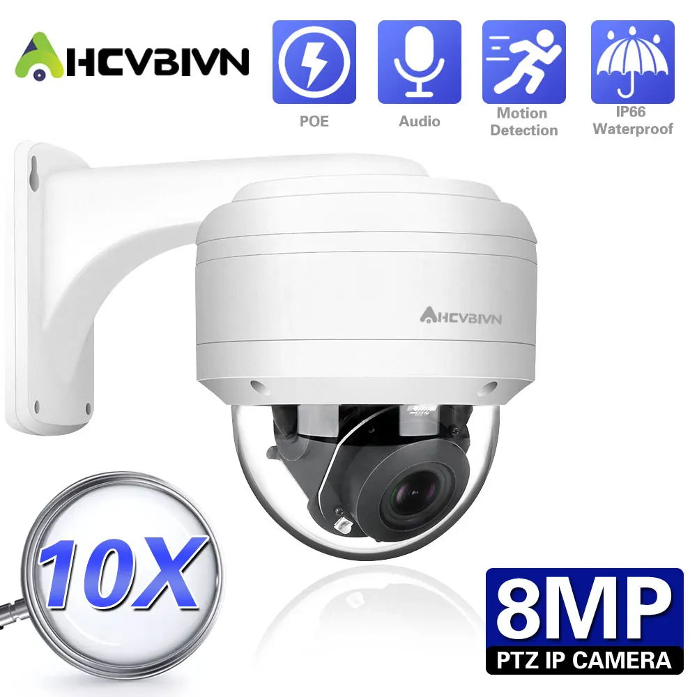 Купольная камера видеонаблюдения H.265 4K PTZ, уличная водонепроницаемая IP-камера с оптическим зумом 5 Мп 8 Мп 10 раз, POE для записи звука