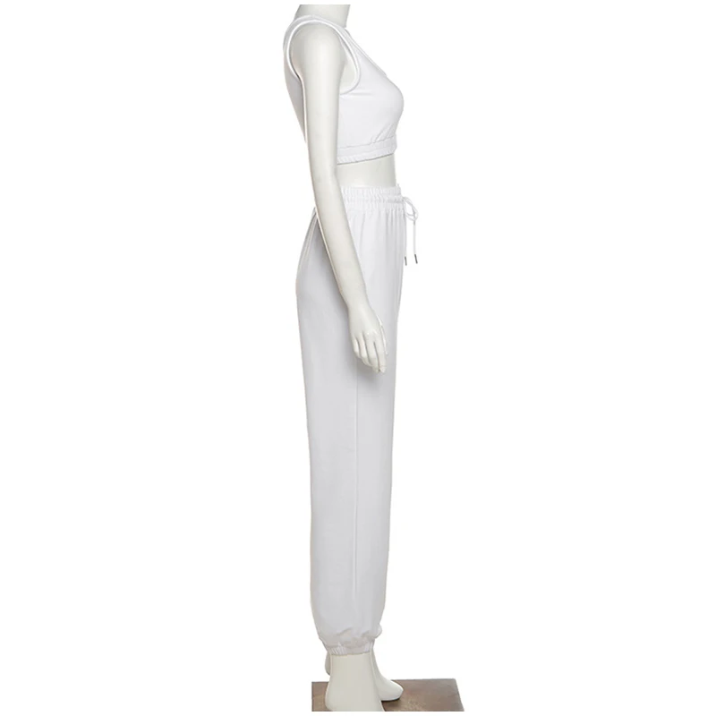 style 2Ladies Sportswear Sleeveless Crop Top 2 Piece Sets