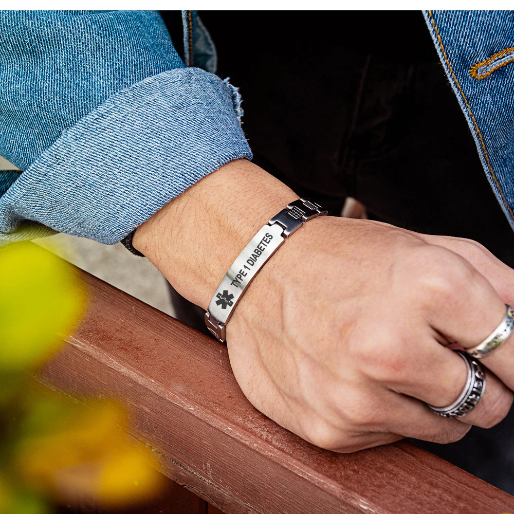 Индивидуальный элегантный медицинский браслет из хирургической стали для мужчин, индивидуальный браслет из нержавеющей стали, Индивидуальные ювелирные изделия