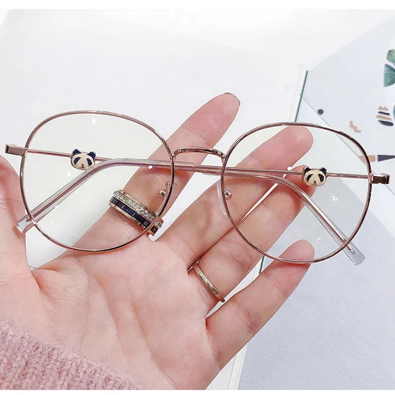 2021 модные декоративные компьютерные очки для близорукости с пандой для женщин круглые металлические очки для зрения по рецепту Женская оправа UV400