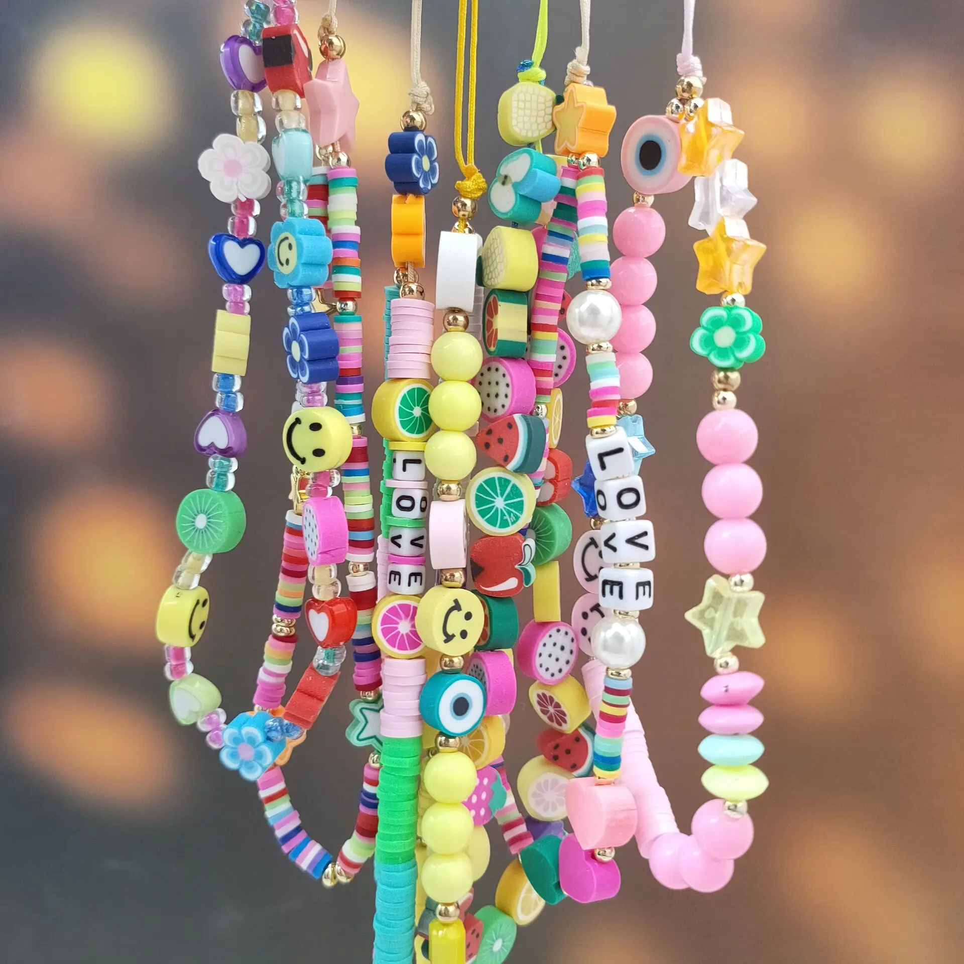 Новинка летние красочные мягкие глиняные ремешки на цепочке для женщин и девушек богемный жемчужный шнурок с улыбкой для чехла телефона висячий шнур