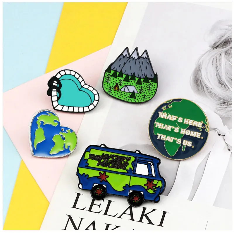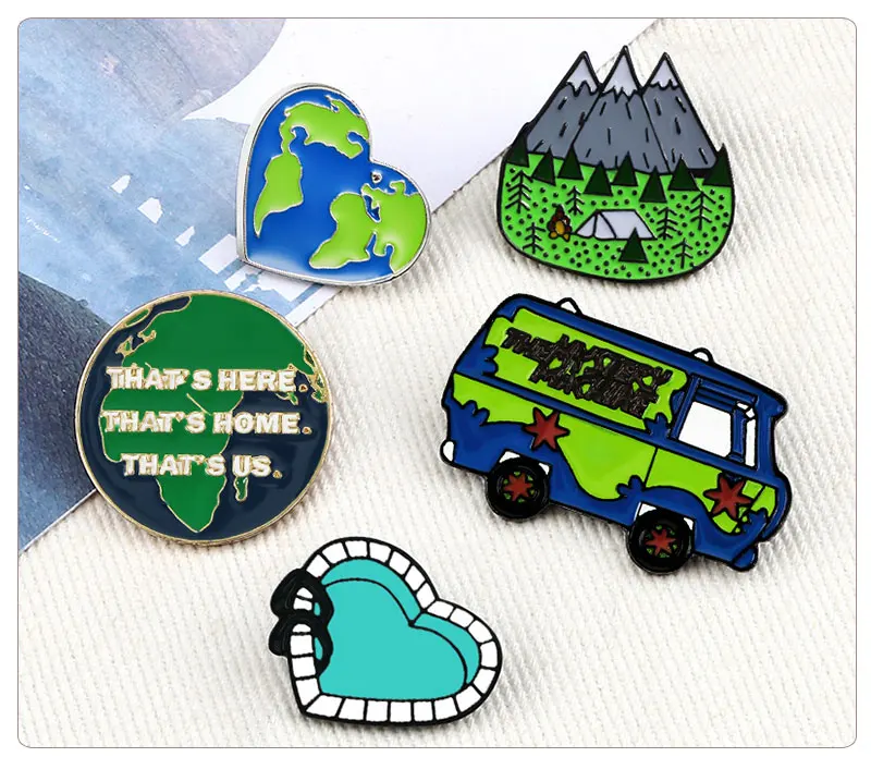 Эмалированные Броши Green Save The Earth, мультяшный значок на булавке, для рубашки, сумки, лацкана, походов на гору, автобус, путешествий
