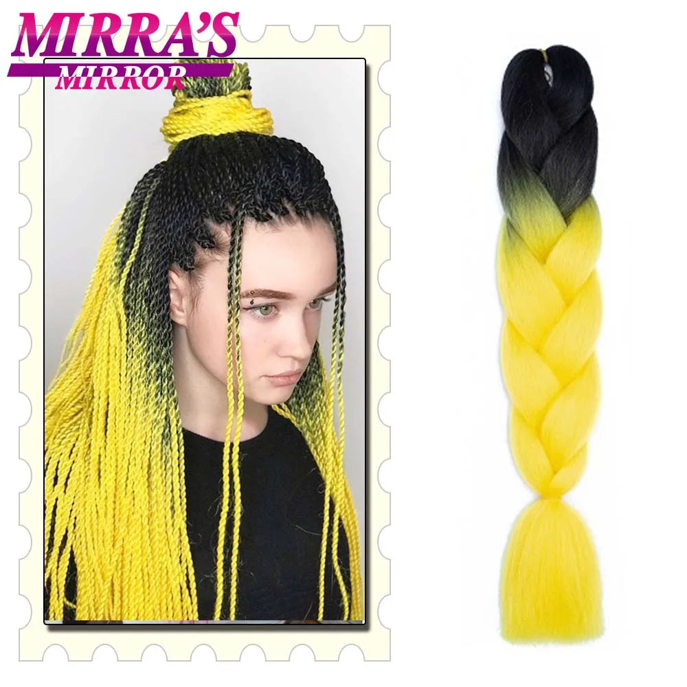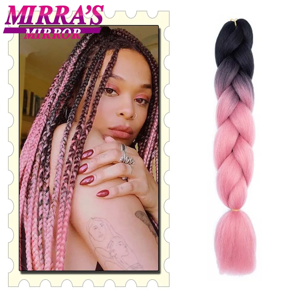 Зеркальные 24 дюйма синтетические волосы Mirra для косичек Омбре Джамбо косички для волос оптовая продажа зеленые розовые коричневые косички 100 гупак.