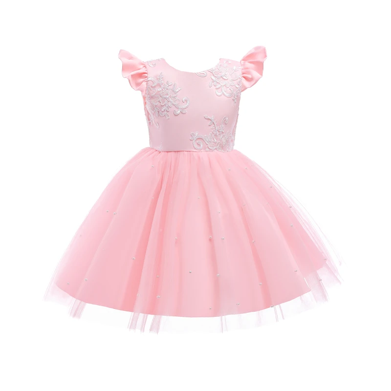 Платье-пачка с жемчугом для маленьких девочек, кружевное детское платье принцессы для первого дня рождения, вечеринки, крестин, От 1 до 5 лет